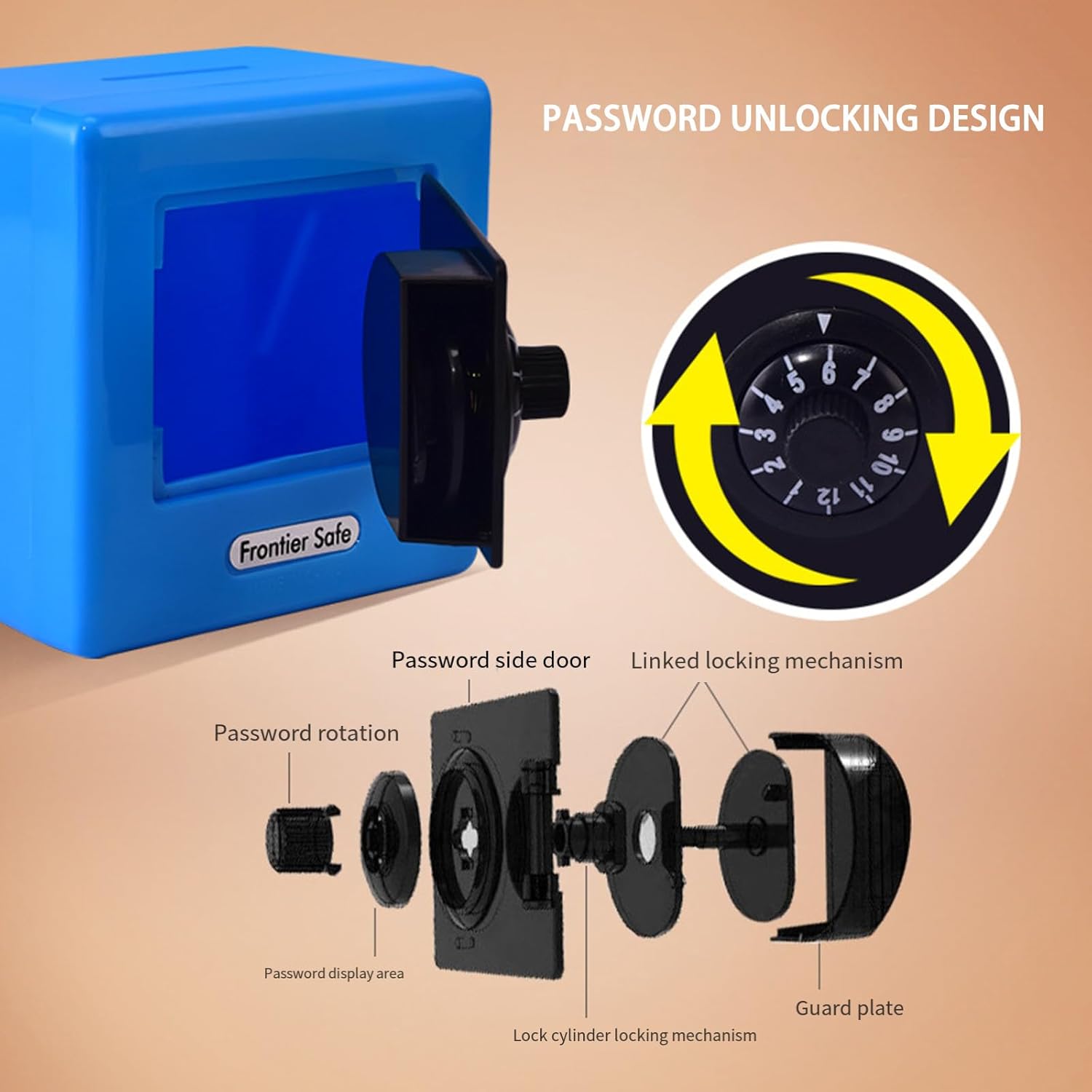Tieni i soldi sicuri, salvadanaio per ragazzi e ragazze, facili da programmare con un codice personalizzato, ideale per ciò di cui i tuoi ragazzi/ragazze hanno bisogno per mantenere i loro soldi al sicuro! I bambini adoreranno nascondere i loro "oggetti di valore" in queste scatole di monete Regalo meraviglioso, dolce e caldo regalo per amici, familiari e te stesso Il pratico blocco password ruota semplicemente in senso antiorario fino al primo codice, quindi in senso orario fino all'ultimo codice. Questa moneta per bambini presenta un design retrò e funzionale con serratura meccanica per un comodo utilizzo Salvadanaio di grande capacità, sicuro per i bambini, molto spazio interno. Questo contenitore per soldi dispone di uno per monete e uno per banconote e può contenere quasi tutte le monete e banconote. Abbastanza grande per contenere anche alcuni piccoli gioielli Salvadanaio, casse di risparmio, realizzati con materiali ABS, robusti salvadanai con cui i bambini possono giocare. Modernizzazione delle banche per bambini, nessun problema con il rumore