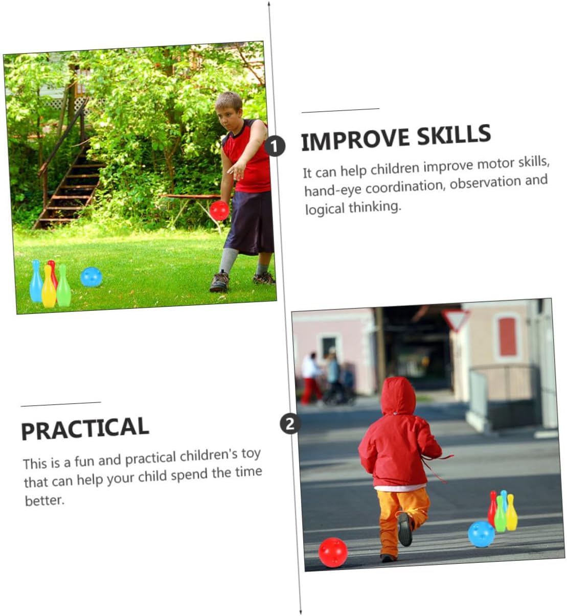 Gioco di bowling per: può aiutare i bambini a migliorare le loro capacità motorie, la coordinazione occhio-mano, le capacità di osservazione e il pensiero logico. Set da bowling per palla da bowling Mini: realizzato e pratico per, bowling per bambini Mini bowling: set da bowling, sufficiente per più giocatori, può essere giocato all'aperto e in casa insieme a genitori e amici, gioco da bowling con palla da bowling per uso interno: con una superficie liscia e senza sbavature, così né il pavimento né le mani si fanno male quando si gioca in casa, set da bowling giocattolo per bambini: questo è un giocattolo per bambini divertente e pratico con cui il tuo bambino può spendere. -palle da bowling per