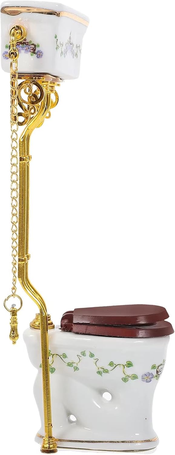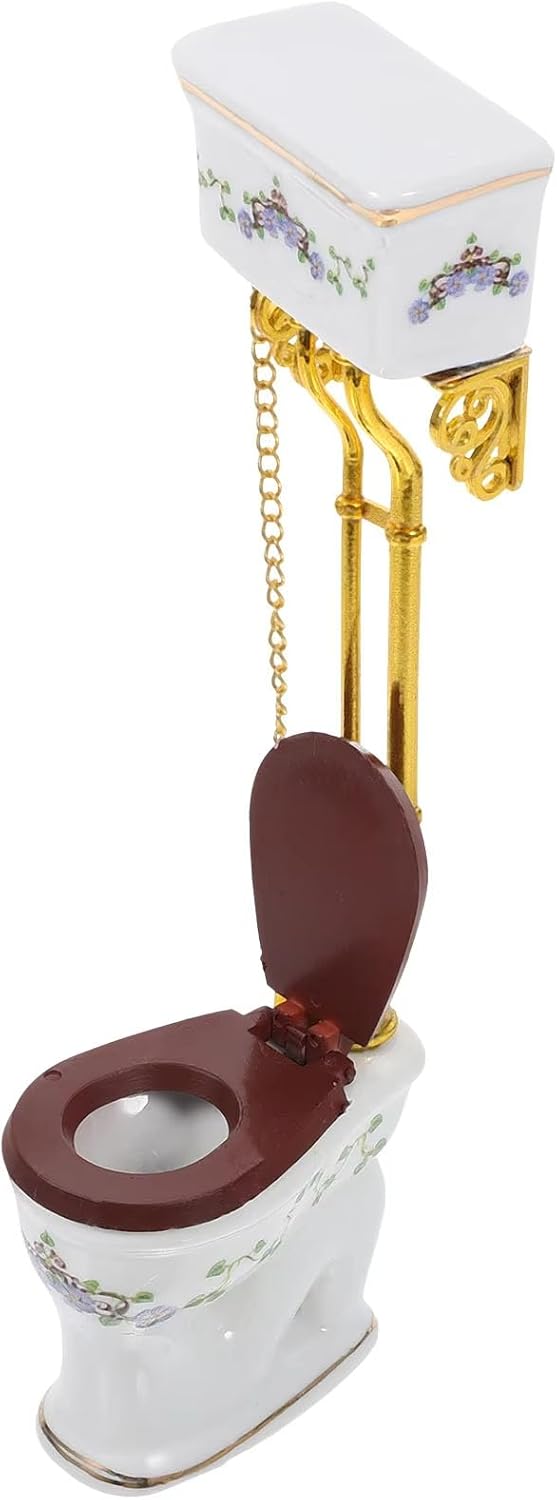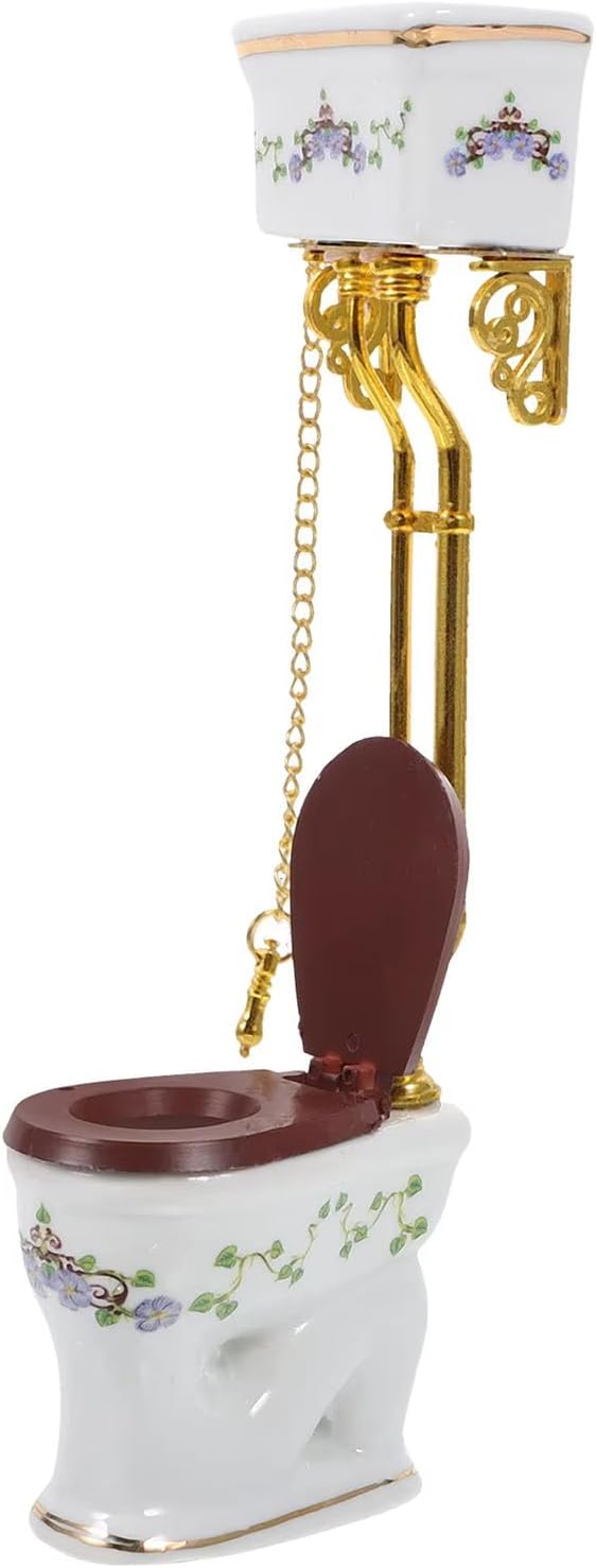 Incluso: 1 modello di toilette (altri accessori non sono inclusi, è molto divertente fare un regalo ai decoratori di case delle bambole. Questi accessori per casa delle bambole includono trame autentiche e stampe floreali per varie decorazioni per bagni in miniatura. Modello dall'aspetto eccellente molto vicino alla realtà. Ottimi oggetti di scena per la fotografia. Modello di toilette elaborato e vintage, compatto e tridimensionale, alto grado di riduzione, i materiali plastici non sono facili da deformare.