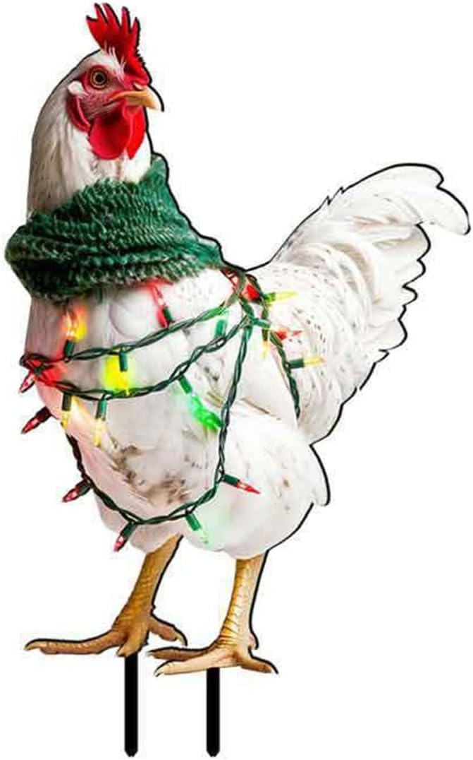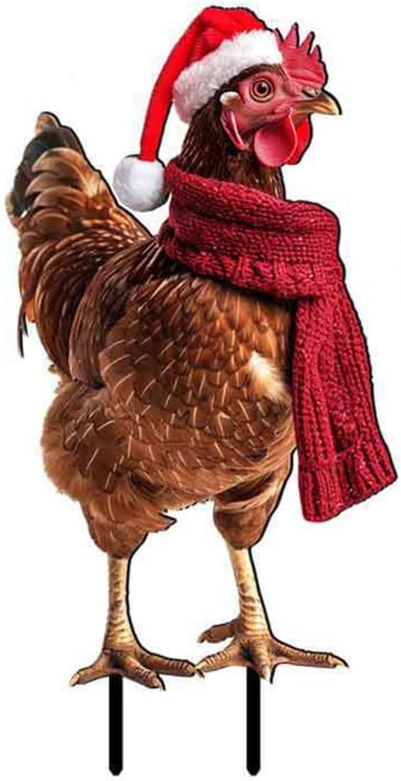 Piccolo recinto da giardino per cani, inserto decorativo artistico, decorazione natalizia a forma di pollo, decorazione da giardino, inserto decorativo per esterni pasquali (rosso, 30,5 x 18,8