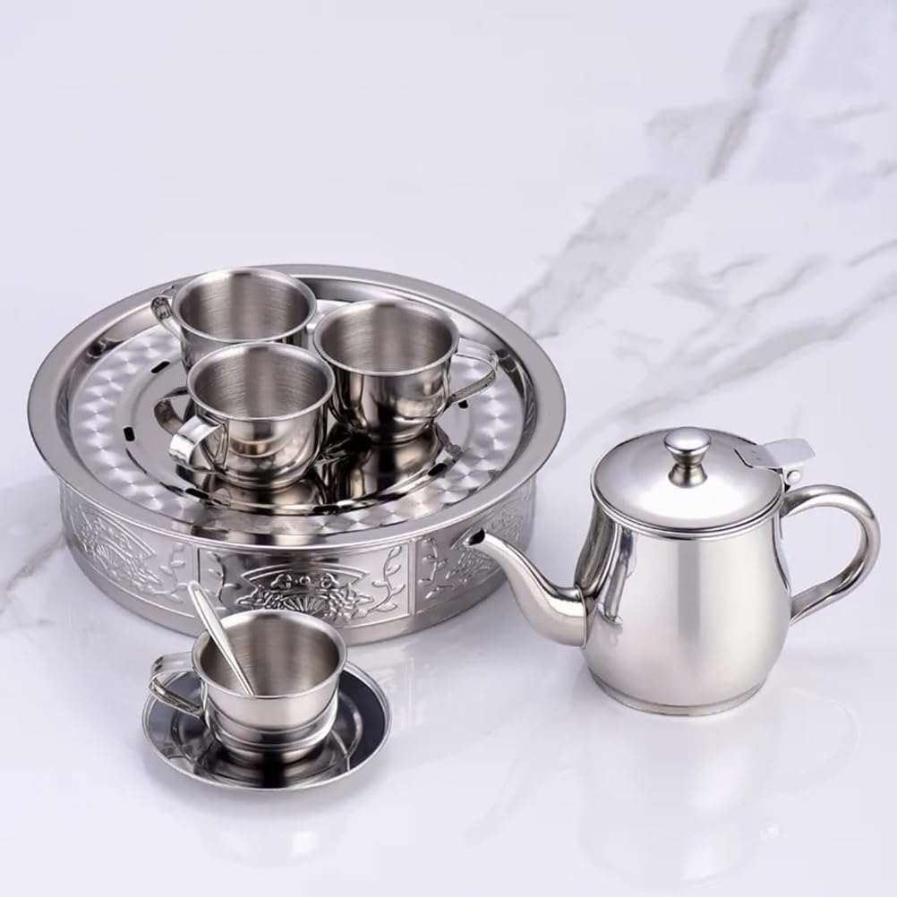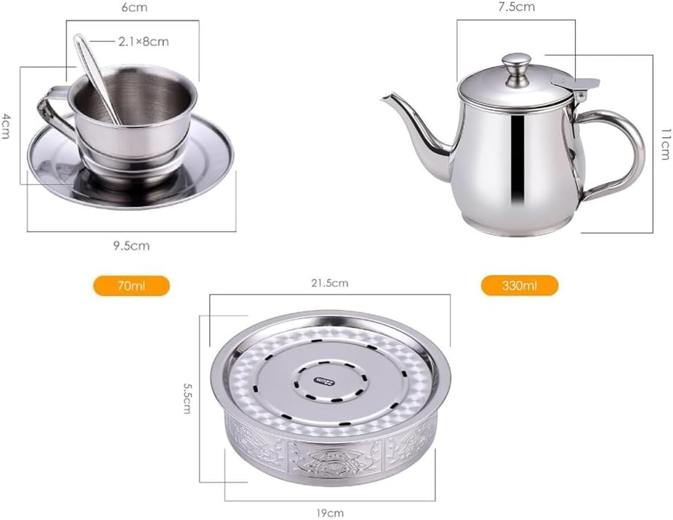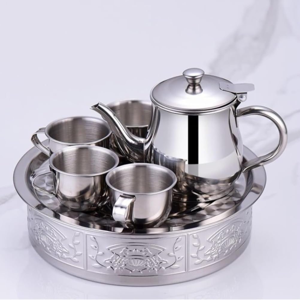 Questo set da tè portatile include una teiera, una base e quattro tazze, realizzate in acciaio inossidabile. Durevole e resistente al calore, perfetto per l'uso all'aperto o per i bambini. Il materiale in acciaio inossidabile 304 garantisce sicurezza e longevità. Compatto e leggero, facile da trasportare per picnic, campeggio o viaggi. Puoi goderti il tuo tè preferito sempre e ovunque con questo set da tè elegante e funzionale.