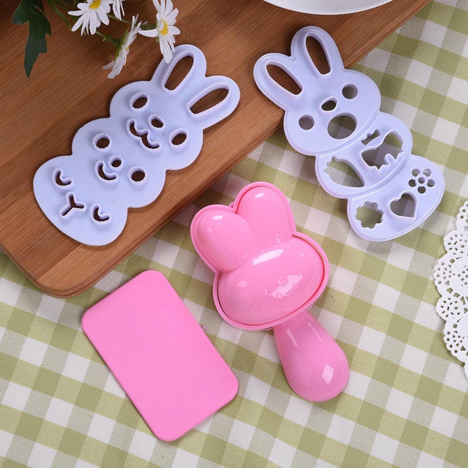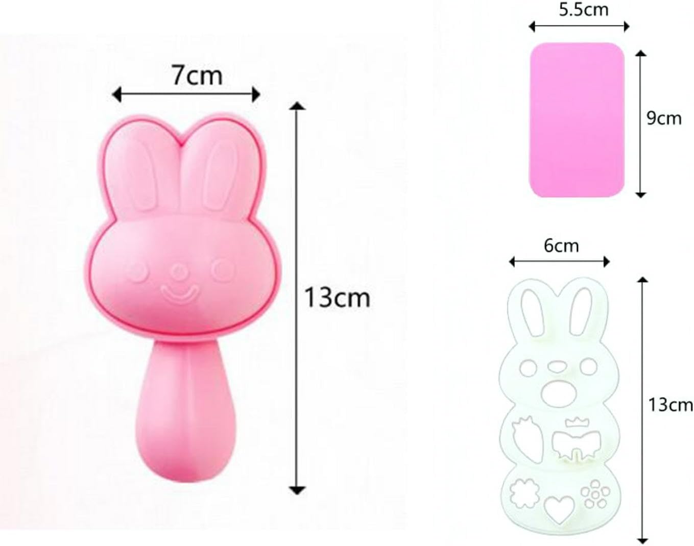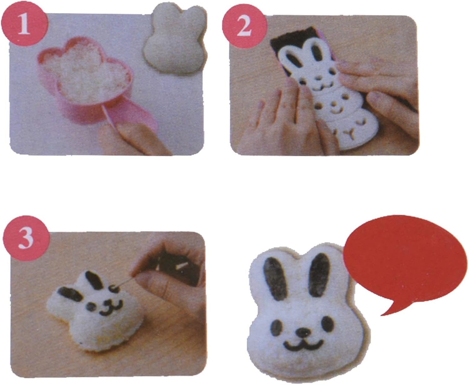 【Forma interessante】 Il modello carino ti consente di realizzare attraenti polpette di riso che il tuo bambino adorerà mangiare. Lo stampo per riso bento ha la forma di un coniglio, che è carino e adorabile. 【Durevole】 Lo stampo per polpette di riso è realizzato in resina ABS e polipropilene. I cuscinetti sono realizzati in gomma siliconica. Il prodotto è realizzato in materiale alimentare. 【Stampo antiaderente】 L'aspetto è creativo, le polpette di riso realizzate non si attaccano allo stampo e la produzione è semplice e veloce. La forma del riso è progettata scientificamente. 【Ampia applicazione】 Lo stampo per sushi è versatile. È adatto per preparare uova, riso, sushi, cioccolato, pane, mooncake, torte e altri alimenti. 【Durevole】 Lo stampo per polpette di riso è realizzato in resina ABS e polipropilene. I cuscinetti sono realizzati in gomma siliconica. Il prodotto è realizzato in materiale alimentare.