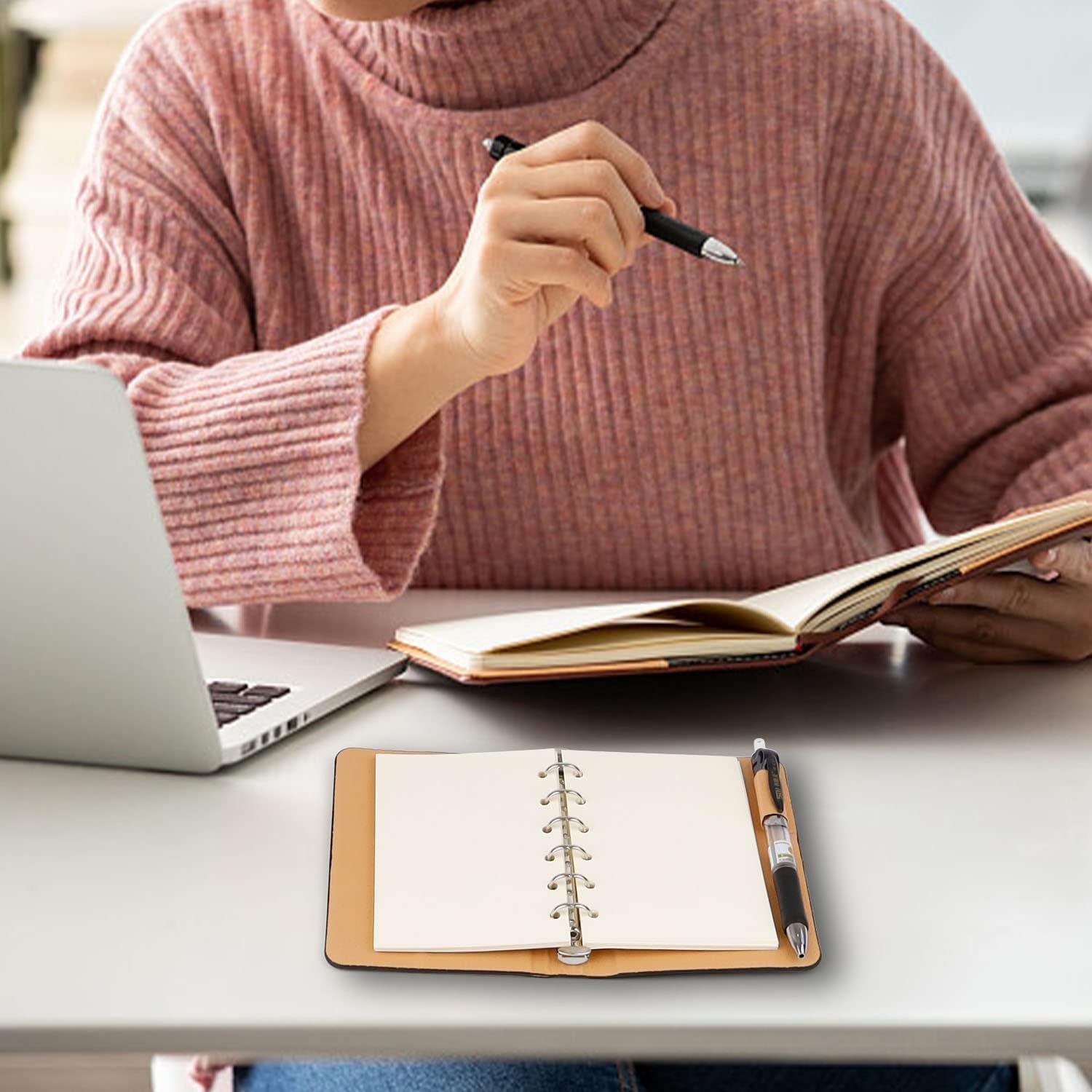 Carta Premium: questo taccuino utilizza carta offset morbida ed elastica con uno spessore di 0,1 mm, resistente alla penetrazione. La sua tinta beige allevia l'affaticamento visivo, offrendo un'esperienza di scrittura e lettura ottimale Design raffinato: ha una copertina rigida di fascia alta, un interno in morbida ecopelle e una rilegatura in metallo di qualità, rispettando l'estetica tradizionale dei quaderni classici Dimensioni: La dimensione totale del taccuino è 14,7 x 10,6 cm, mentre la superficie di scrittura misura 12,8 x 8,8 cm Facile riempimento: Oltre ai 50 fogli originali, sono inclusi 50 fogli sostitutivi. Attiva i pulsanti su entrambe le estremità per aprire il raccoglitore e sostituirli secondo necessità Versatilità d'uso: questo mini taccuino è ideale per prendere appunti di lezione, riepiloghi delle riunioni o creare il tuo diario di viaggio