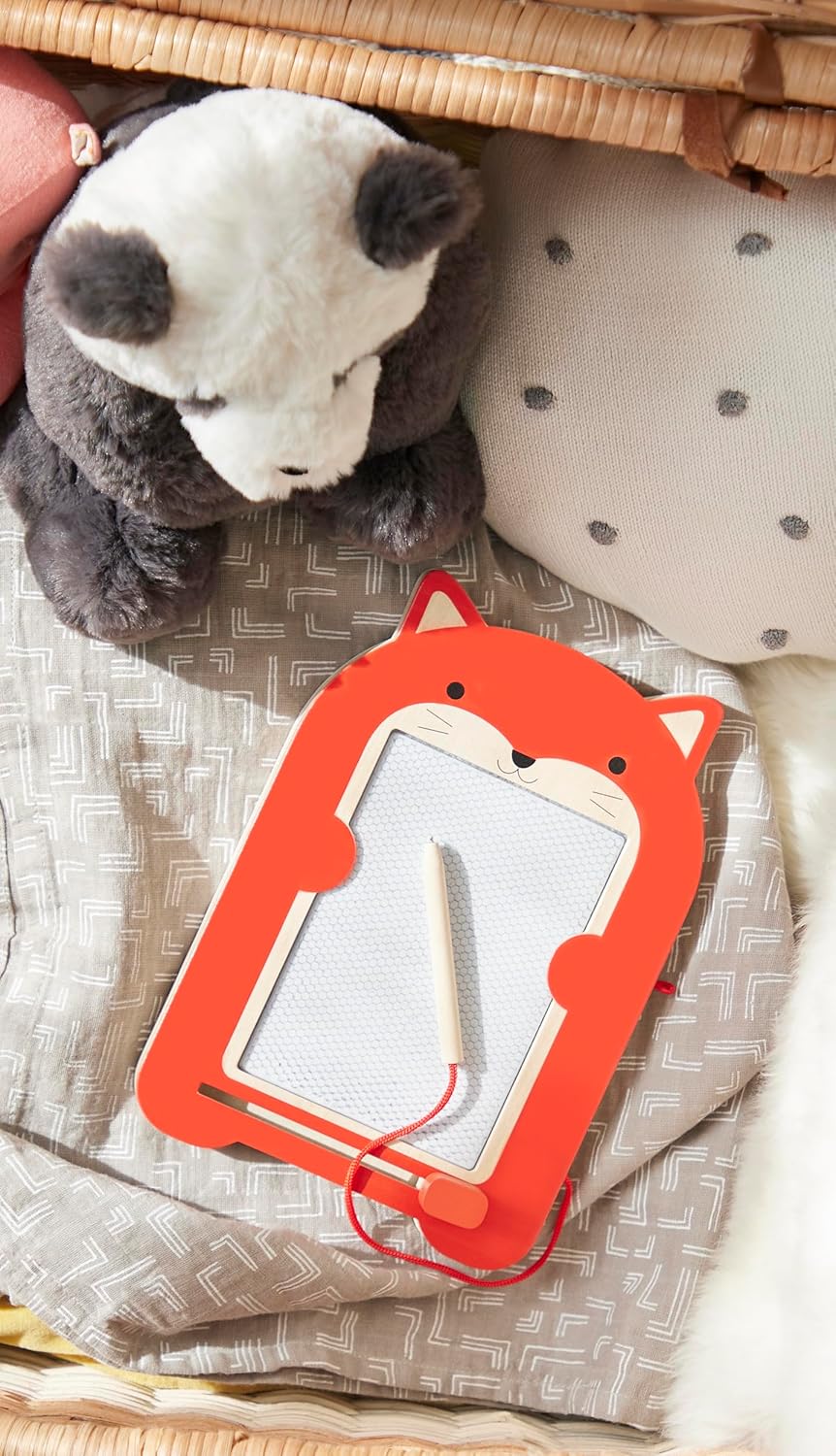 This is a cute, super portable doodle board HOWEVER unfortunately it started falling apart from day 1. The top layer is very easily chipped and actually it is a hazard if sharp pieces are swallowed by a child. Very disappointed, I was expecting much better quality for the price.