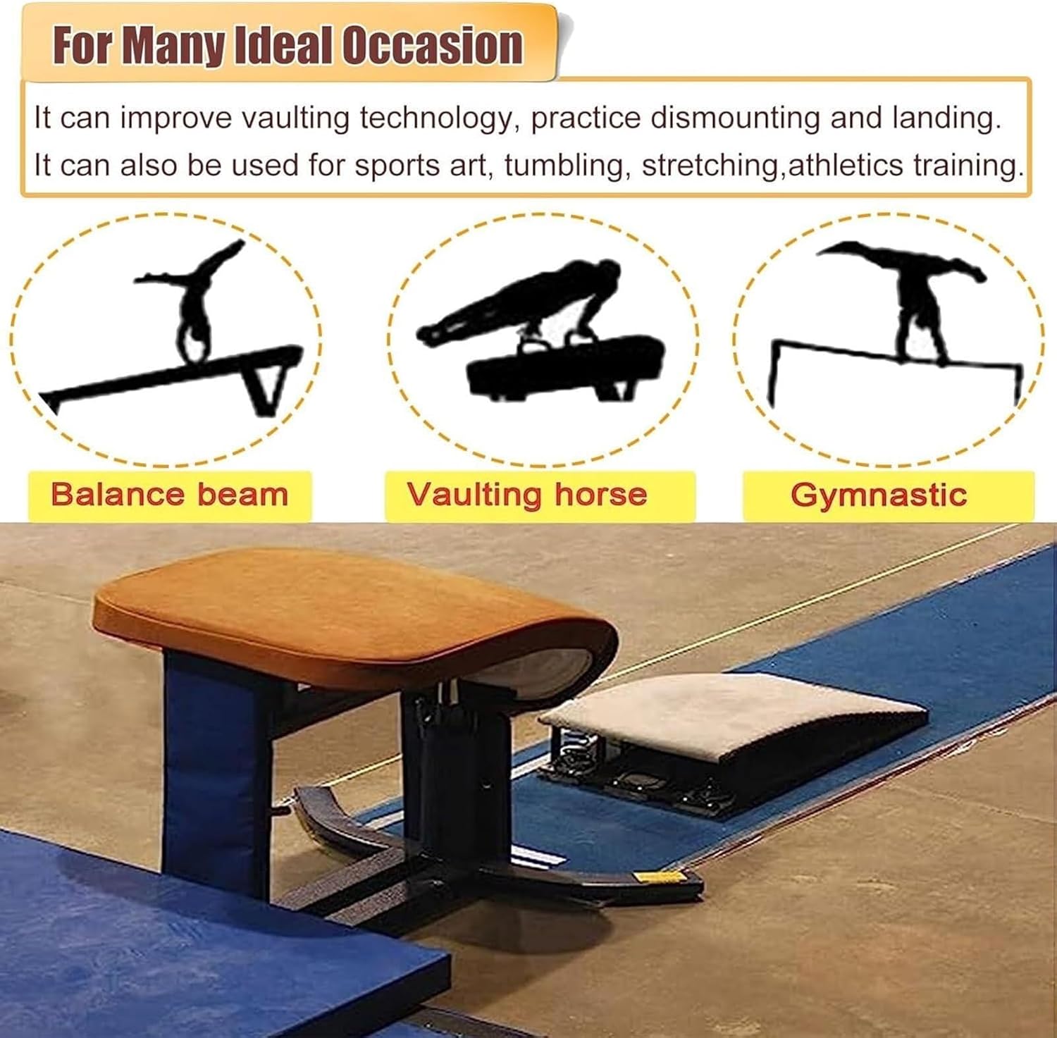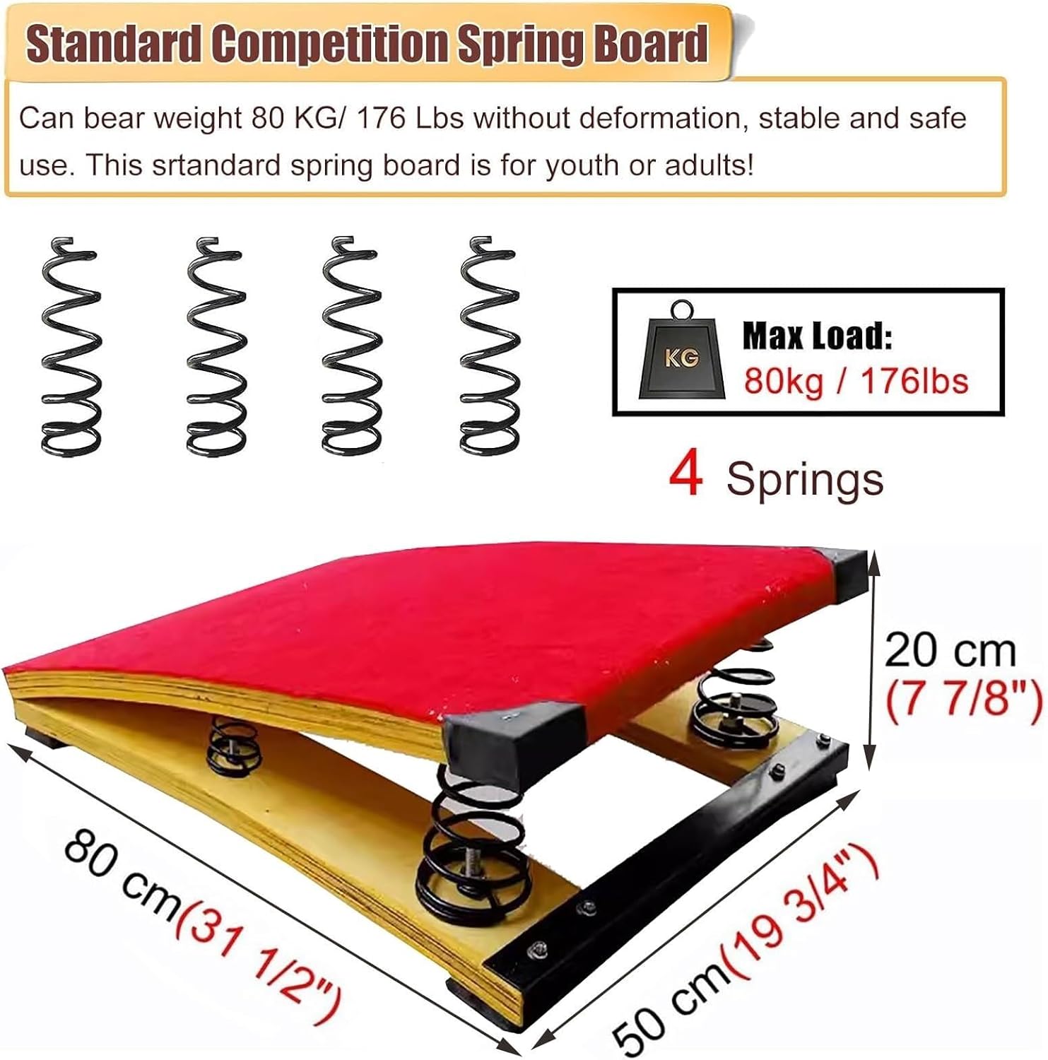 Struttura in legno duro: realizzata in robusto legno duro, questa pedana offre una capacità di carico e una stabilità eccezionali, garantendo prestazioni durature. Molle in acciaio altamente elastiche: dotate di 4 molle ispessite e ad alta resistenza, che garantiscono elasticità e rimbalzo, aiutando i giovani ginnasti a risparmiare energia e a saltare più in alto. Superficie in feltro antiscivolo: la superficie superiore è ricoperta da feltro antiscivolo e assorbente per il sudore, che offre una presa sicura e protegge i piedi durante l'uso. Perfetto per bambini e adolescenti: ideale per l'allenamento di ginnastica, il volteggio, le capriole e le attività di corsa a ostacoli, supporta fino a 65 kg (140 libbre) di peso. Strumento di allenamento versatile: perfetto per l'uso in centri di ginnastica, scuole, palestre domestiche e club sportivi, aiuta a migliorare le capacità di volteggio, la flessibilità e la coordinazione fisica.