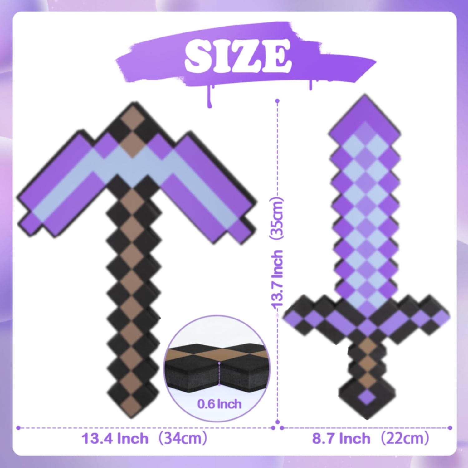 Dimensioni: ca. 45cm. Una spada in schiuma a doppia faccia a grandezza naturale, è uno strumento ideale per i giocatori di tutte le età. Mantienilo come se stessi entrando nel mondo di gioco in modo che tu e un amico possiate creare le vostre scene di gioco. Sicuro e durevole: realizzato con materiali atossici ed ecologici, pieno di schiuma EVA pesante e resistente, offre una migliore sensazione sulla pelle e all'interno non vengono utilizzati bastoncini. 【Adatto a varie occasioni】 Questa spada pixel è perfetta per essere utilizzata come oggetto di scena negli spettacoli scolastici o per feste a tema su Internet, feste di compleanno, Halloween e feste in costume. Grande giocattolo con spada: queste spade in schiuma sono molto adatte per far giocare i bambini e sono completamente sicure per i bambini. Ideali anche come ricompense, premi e regali promozionali.