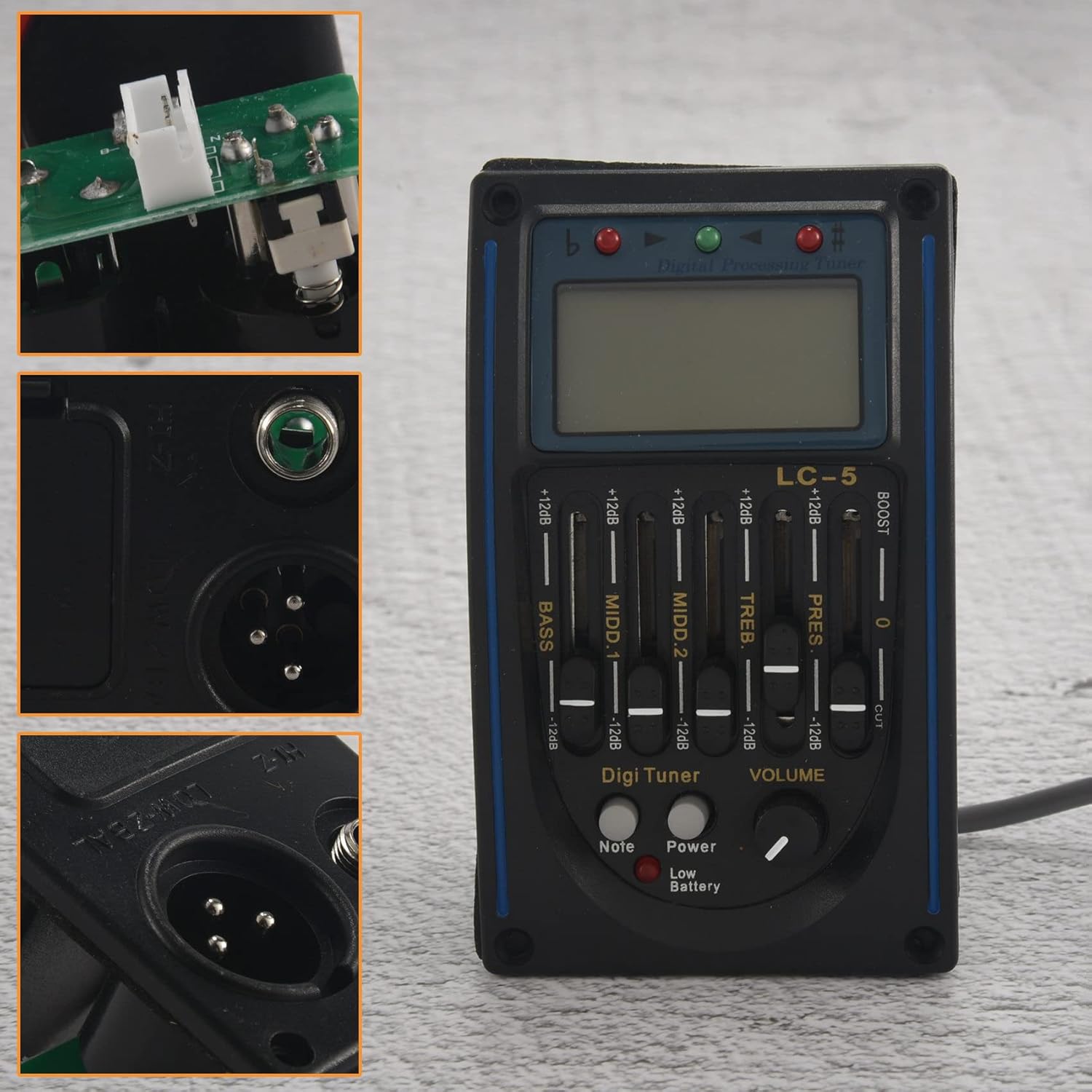 3. Amplifica il suono della chitarra acustica - L'unità Pick-up preamplificata a 5 bande include tutto il necessario per aggiungere un pickup alla tua chitarra acustica e amplificare il loro suono. 2. Ottima gamma di tonalità e pickup - Il kit completo offre una vasta gamma di tonalità e pickup ed è realizzato per essere installato nel corpo di qualsiasi chitarra acustica standard. 1. EQ a cinque bande: controllo volume, controllo presenza, controllo , controllo Middle1, controllo Middle2, controllo degli acuti, pulsante di accensione / spegnimento 'accordatore. 4. Facile da leggere - Display LCD, facile da leggere. Accordatore per chitarra professionale Modalità di sintonizzazione automatica e manuale. 5. Frequenza, Potenza - Risposta in frequenza: 20Hz - 20KHz, Potenza: batteria 6F22 9V (non inclusa)