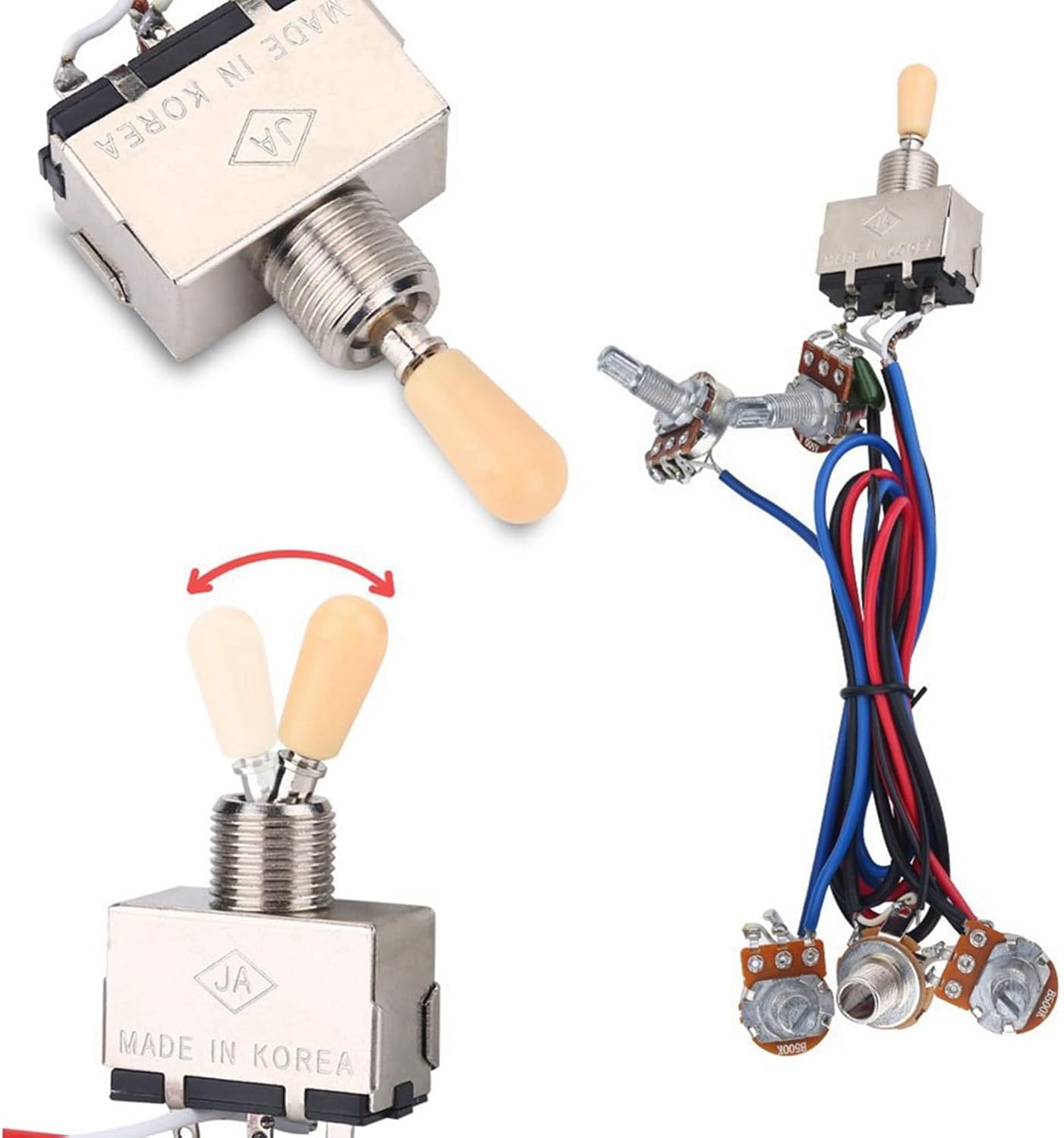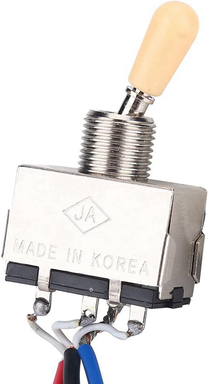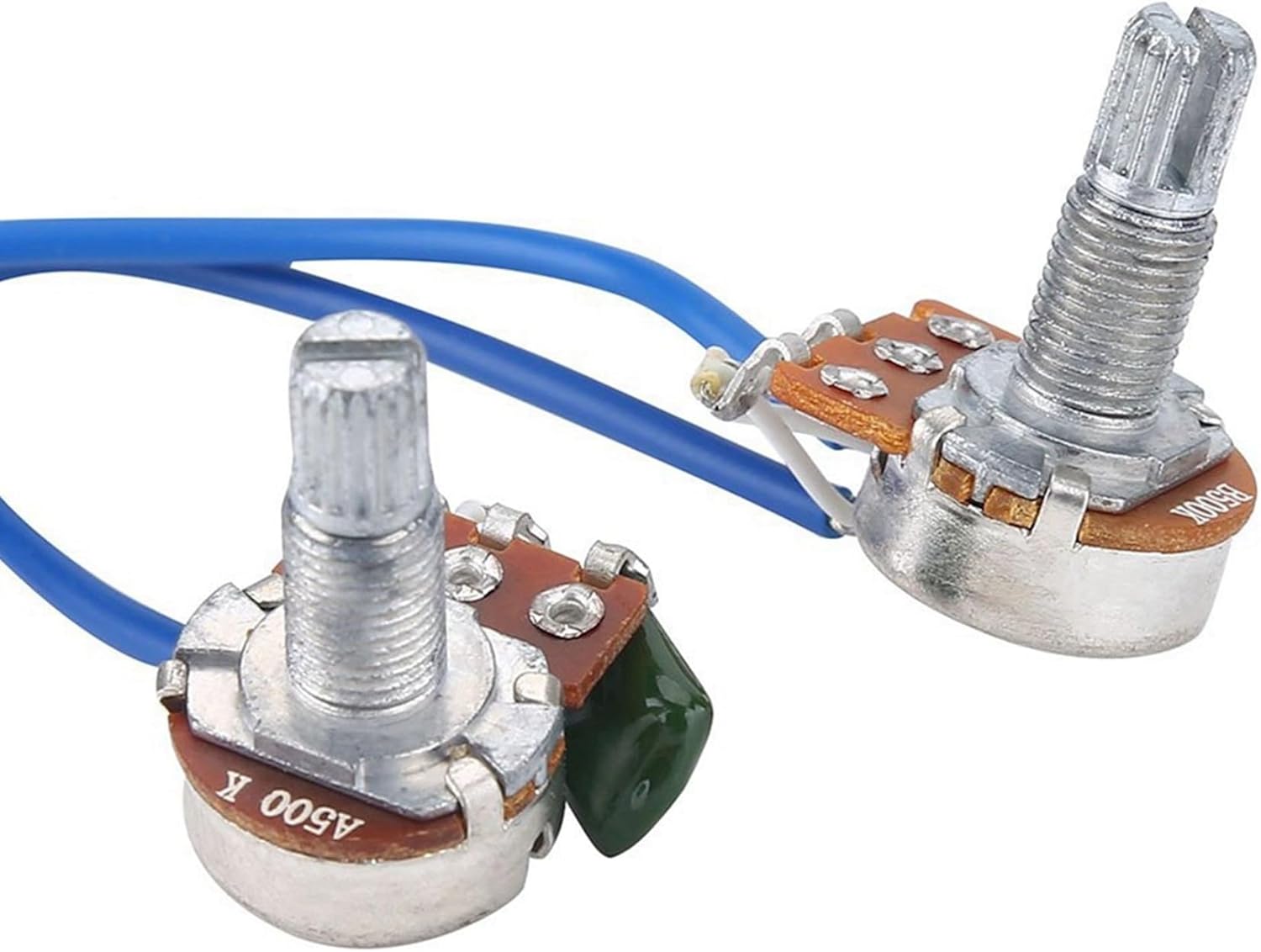 Cablaggio: due volumi / due toni / interruttore a tre vie, due condensatori, una presa jack di ingresso Set di circuiti elettrici per chitarra elettrica LP Style, Materiale: metallo e filo, 2 potenziometri volume e 2 toni: due potenziometri A500k, due potenziometri B500k Lunghezza 'albero: ca. 18 mm / 0,71 pollici, diametro base: ca. 16mm / 0,63 pollici, interruttore: ca. 18 x 28 x 49 mm / 0,71 x 1,1 x 1,9 pollici Cappuccio interruttore: color crema