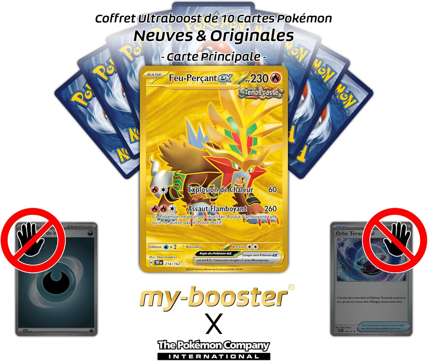Piercing Fire ex 214/162 Secret Past Time Gold - Ultraboost X Scarlet e Violet 5 Temporal Forces - Scatola da 10 carte Pokémon francesi