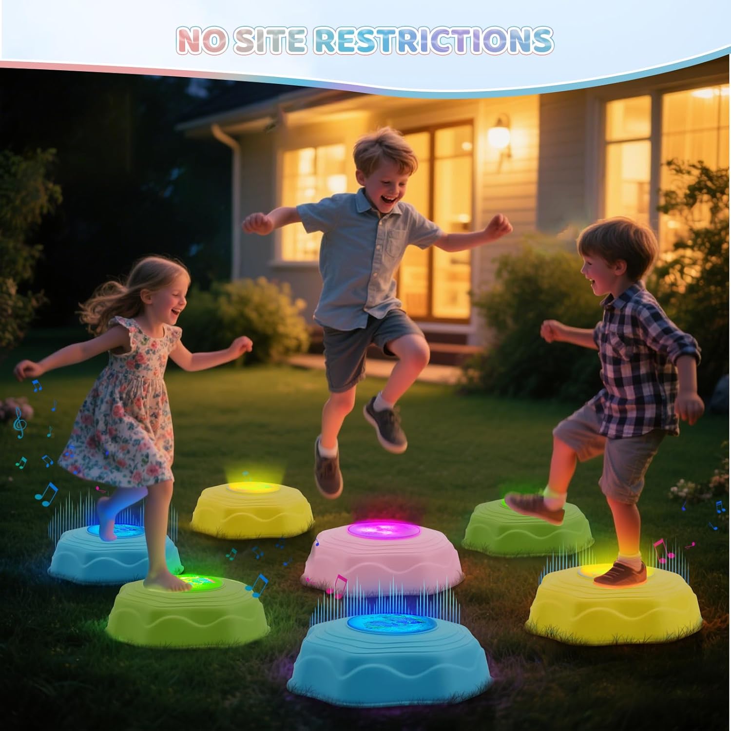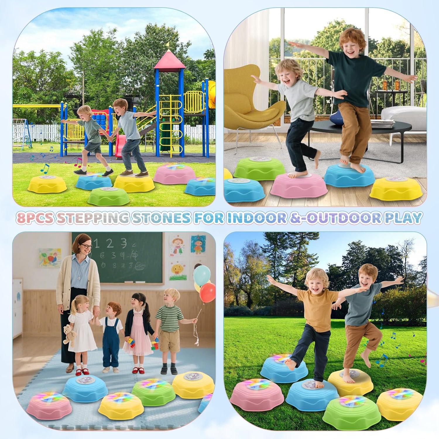 🦄【6 PCS Pietre per l'equilibrio per Bambini con Musica e Luci】Questo è un set di 6 pietra dell'equilibrio per bambini colorate, ogni pietra dell'equilibrio dei bambini si illumina e suona una musica allegra non appena viene inserita; Ciò garantisce ulteriore divertimento, soprattutto di sera o al chiuso; Le luci e la musica creano un'atmosfera magica che i bambini adoreranno 🦄【Un Compagno Importante Per L'infanzia】Stapelstein; Quando i vostri figli sono piccoli, possono imparare a camminare o a stare in piedi sulla trave di equilibrio, oppure giocarci come giocattolo per l'impilamento; Quando sono in età prescolare, possono giocare con loro: spargendoli, allineandoli, disponendoli in cerchio e creando un percorso a ostacoli; Incoraggia il gioco strutturato e quello immaginativo; Insegna loro le abilità motorie, la coordinazione e l'equilibrio, i colori, la sensorialità, i turni, il conteggio, il grande/piccolo, ecc 🦄【Design Impilabile】Ideale per il gioco all'interno e all'esterno, si può posizionare su un tappeto o sull'erba del giardino; Dopo il gioco, le pietre di attraversamento del equilibrio possono essere impilate direttamente e possono essere riposte in un angolo della stanza per risparmiare spazio 🦄【Sicuro e Robusto】La nostra pietra di equilibrio per bambini è realizzata in plastica sicura ed ecologica, liscia e senza bave, che protegge la pelle sensibile del bambino; La sua struttura robusta può sostenere il peso di un adulto e garantisce una lunga durata (fino a 220 libbre) 🦄【Promuovono L'equilibrio e la Coordinazione】Questi psicomotricità per bambini incoraggiano l'attività fisica e il gioco attivo, motivando il tuo bambino a saltare, allungarsi, arrampicarsi e stare in equilibrio per sviluppare le sue capacità motorie; I nostri gradini sono disponibili in Cinque colori; Riconoscere colori e forme diverse può aiutare i bambini a sviluppare la coordinazione occhio-mano e le capacità di pensiero logico