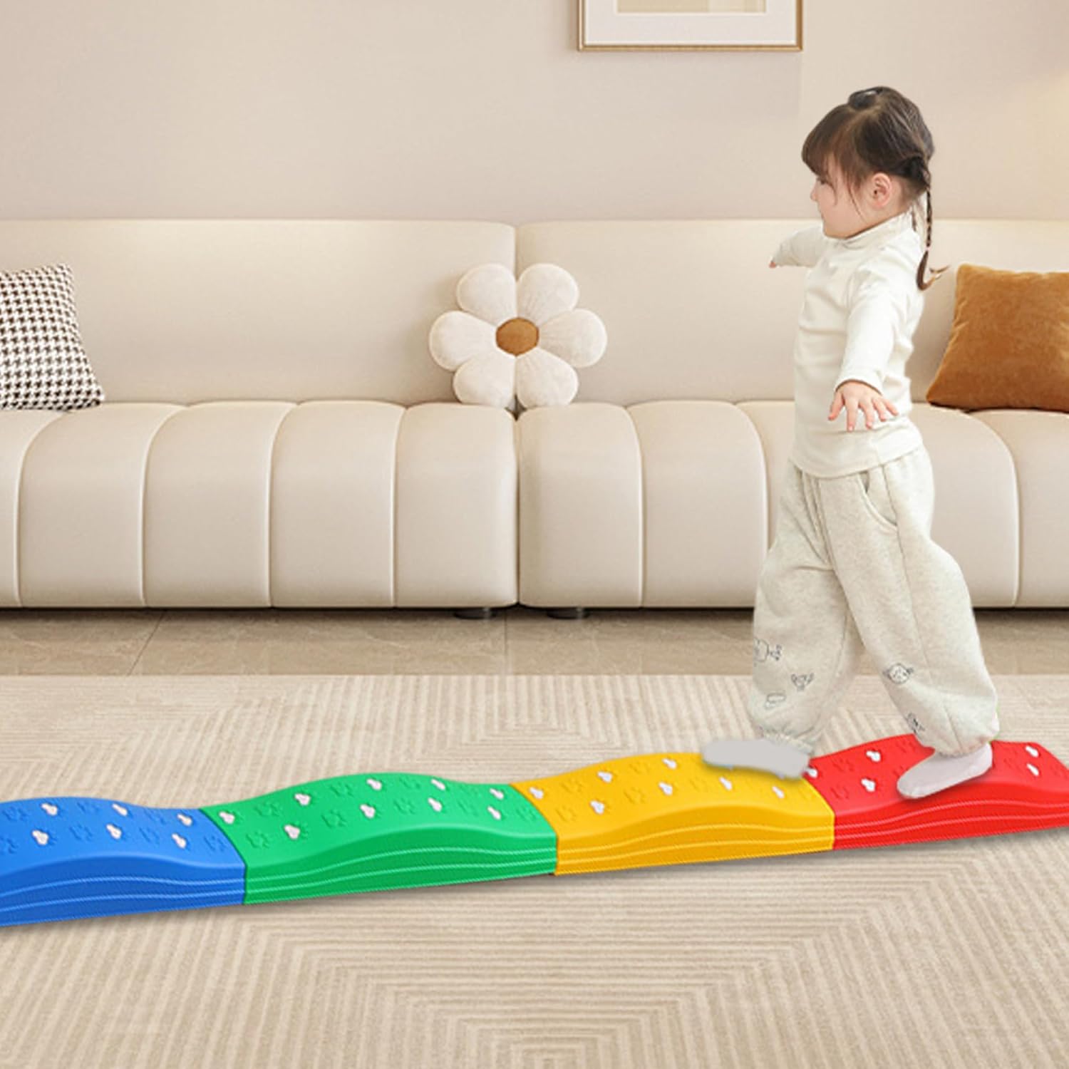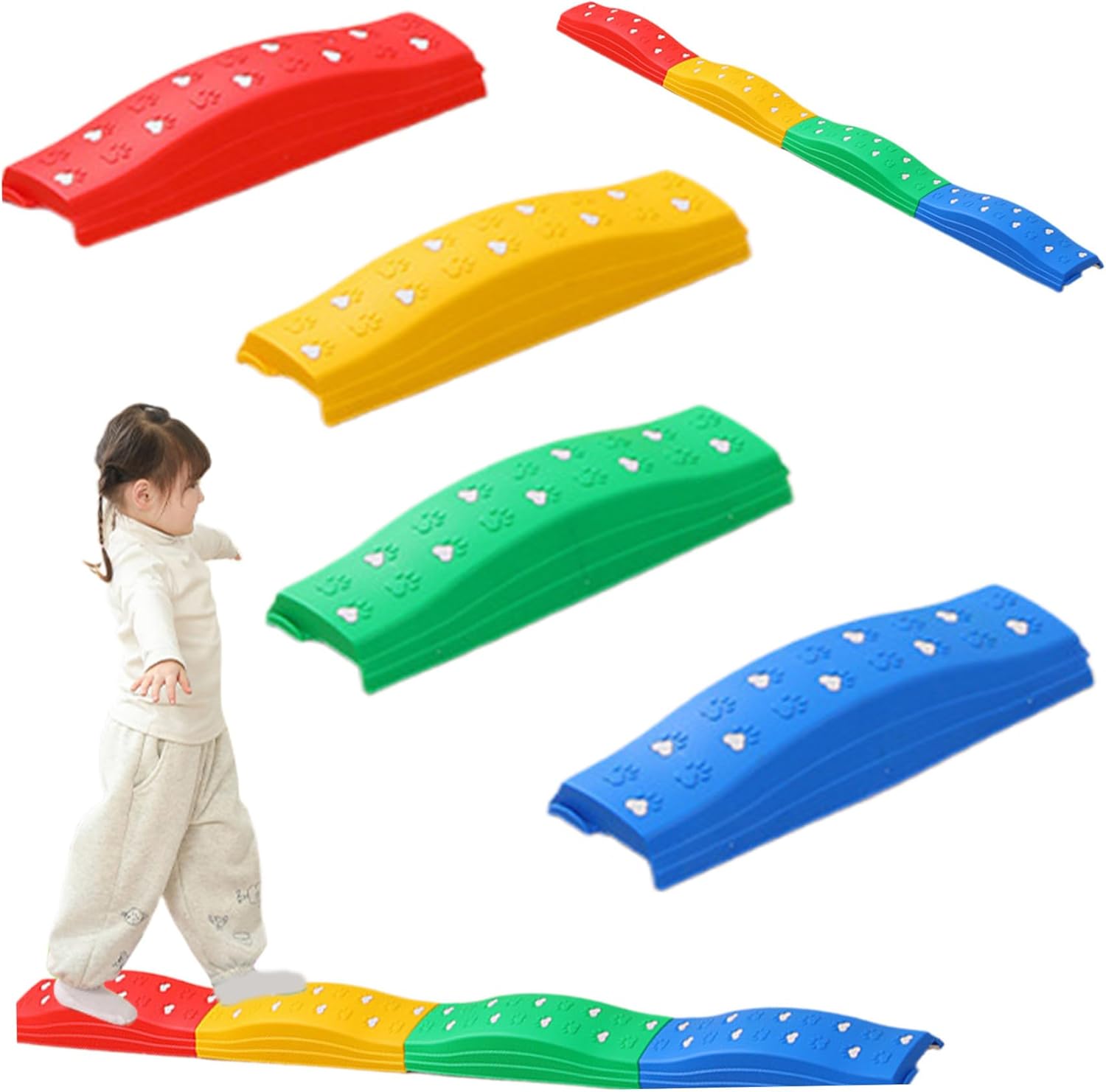 Facile da pulire e riporre: questi trampolini di equilibrio sono leggeri e facili da impilare e possono essere comodamente riposti quando non vengono utilizzati. Inoltre, sono facili da pulire, rendendo la manutenzione un gioco da ragazzi per i genitori. Migliora la coordinazione: questo set di 4 trampolini colorati è progettato per migliorare l'equilibrio e la coordinazione dei bambini in modo divertente e coinvolgente, rendendolo un'aggiunta ideale a qualsiasi area giochi per bambini o collezione di giocattoli sensoriali. Antiscivolo e design: questi trampolini presentano una superficie antiscivolo e offrono ai bambini una presa sicura e garantiscono stabilità durante il gioco. Sono realizzati in plastica e possono resistere ai rigori dell'uso interno ed esterno. GIOCO VERSATILE ALL'INTERNO ED ALL'APERTO: questi trampolini di lancio sono adatti sia per uso interno che esterno e possono essere disposti in diversi modelli per creare un percorso a ostacoli divertente e stimolante per i bambini. Vivace e sensoriale: il design luminoso e colorato delle travi di equilibrio stimola lo sviluppo sensoriale dei bambini, incoraggiandoli a giocare attivamente migliorando al contempo le loro capacità di riconoscimento visivo.