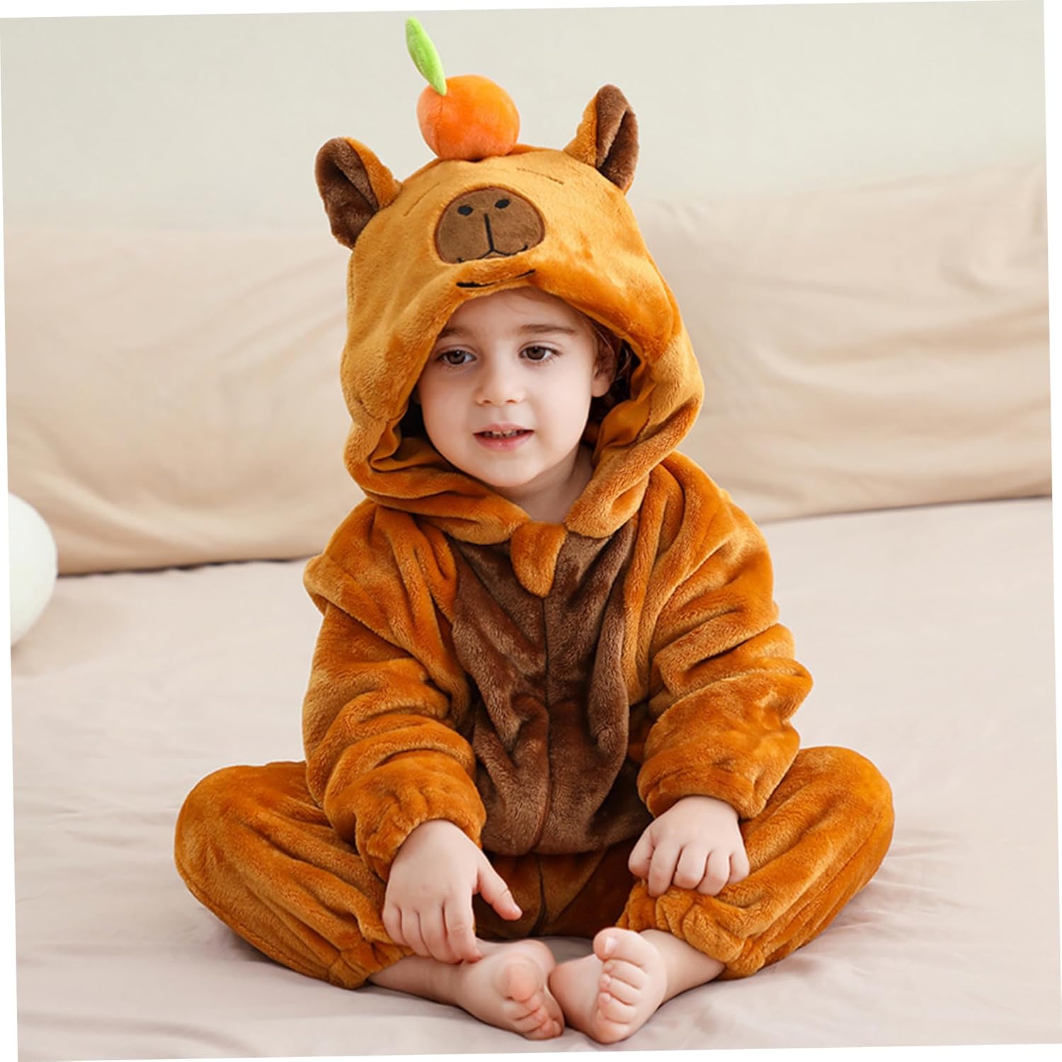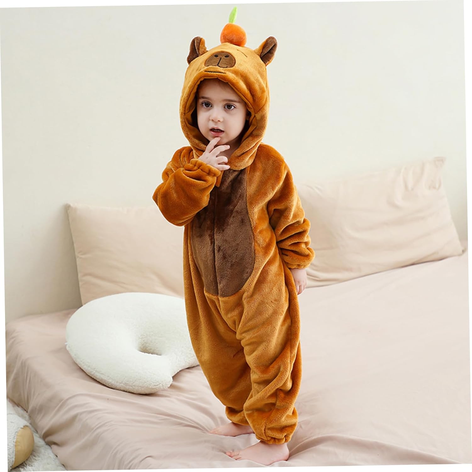 Pigiama capibara per bambini in flanella di cartone animato caldo costume da capibara con cappuccio soffice pigiama carino vestito strisciante per bambini per feste a tema, abbigliamento casual per l