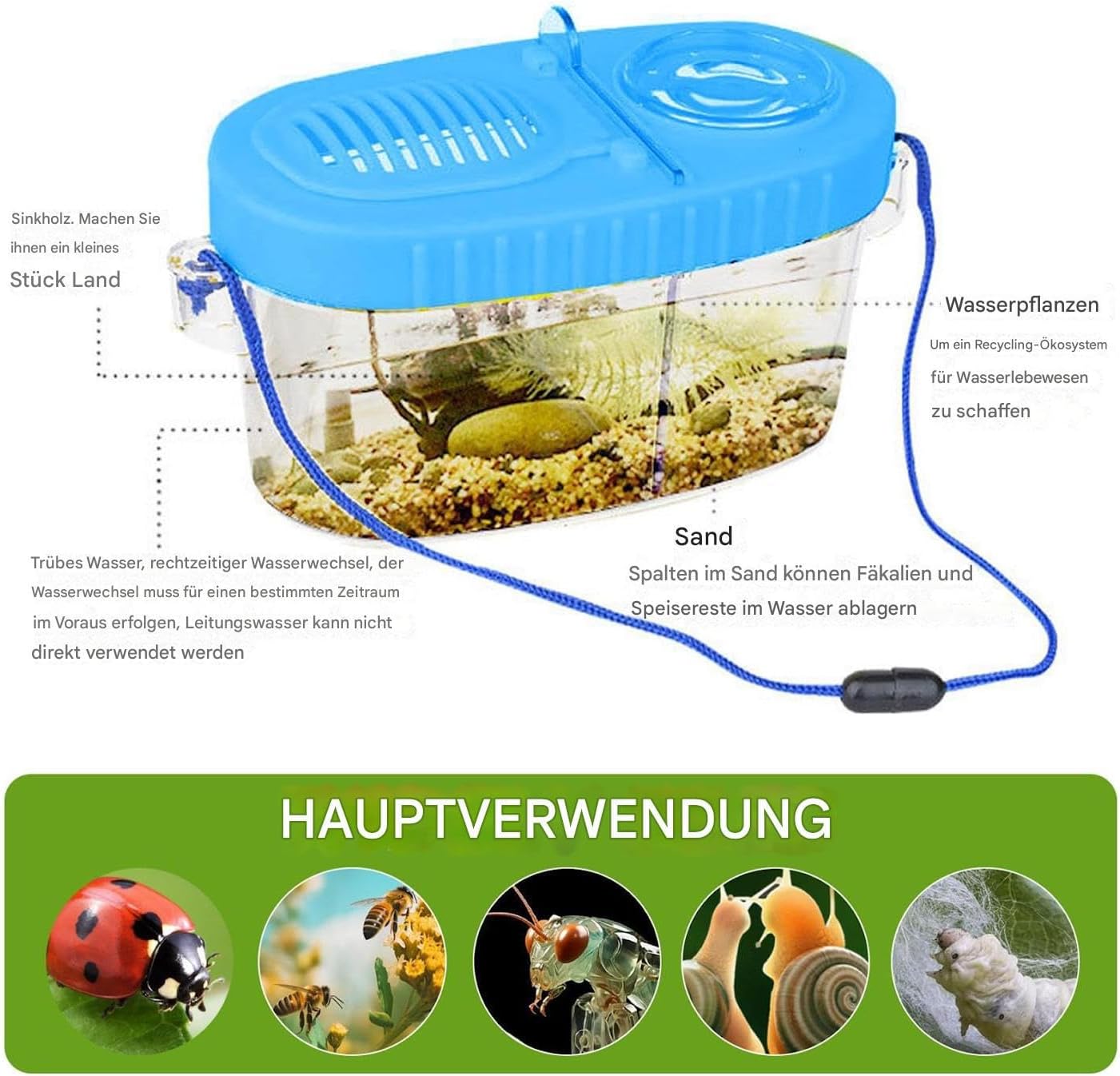 Visione chiara: realizzato in polipropilene trasparente per una piena trasparenza, crea uno spazio vicino alla natura che consente ai bambini di osservare le interazioni delle farfalle da vicino e accattivanti. Divertimento educativo: motiva i giovani esploratori con set completo di gabbia, attrezzi e rete per osservazioni educative degli insetti, apprendimento giocoso con esperienza pratica Facilissima da usare: aumenta la percezione dei dettagli grazie allo strumento di ingrandimento per le viste macro e pinzette precise per una presa sicura, favorisce l'apprendimento tattile durante le gite di scoperta. Pareti in mesh ventilate: ventilazione ben studiata con materiale a rete e aree separate per consentire ai bambini di seguire il processo completo di metamorfosi, favorisce l'apprendimento giocoso dei contesti scientifici Apprendimento guidato dalla curiosità: perfetto per attività scientifiche interne ed esterne. Incoraggia i bambini a fare scoperte pratiche con il pigliamosche. Suscita giocosamente curiosità e senso di osservazione nell'esplorazione interattiva del mondo naturale.