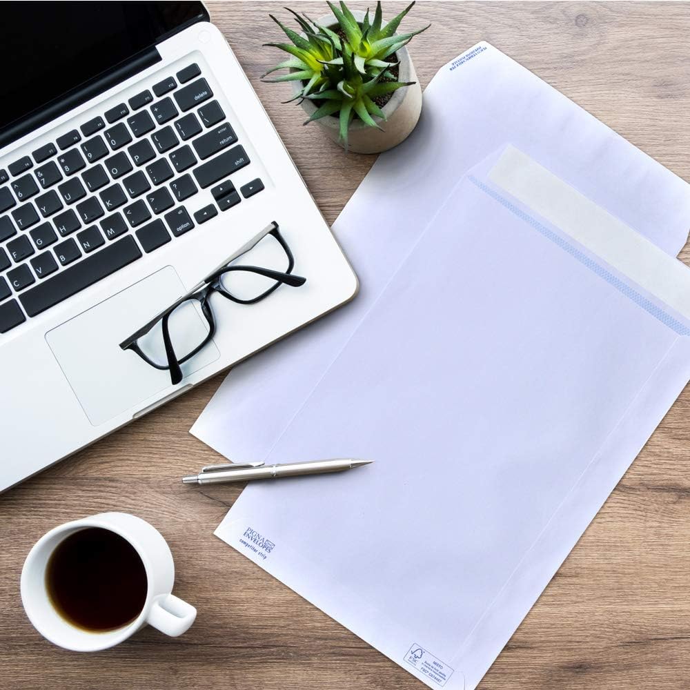 Buste a sacco strip formato 229x324 Carta naturale uso mano bianca fsc da 80 grammi Chiusura patella strip Senza finestra Impacco da 500 buste