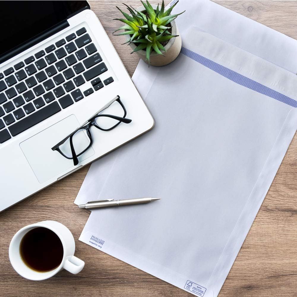 Buste a sacco strip formato 250x353 Carta naturale uso mano bianca fsc da 80 grammi Chiusura patella strip Senza finestra Impacco da 500 buste