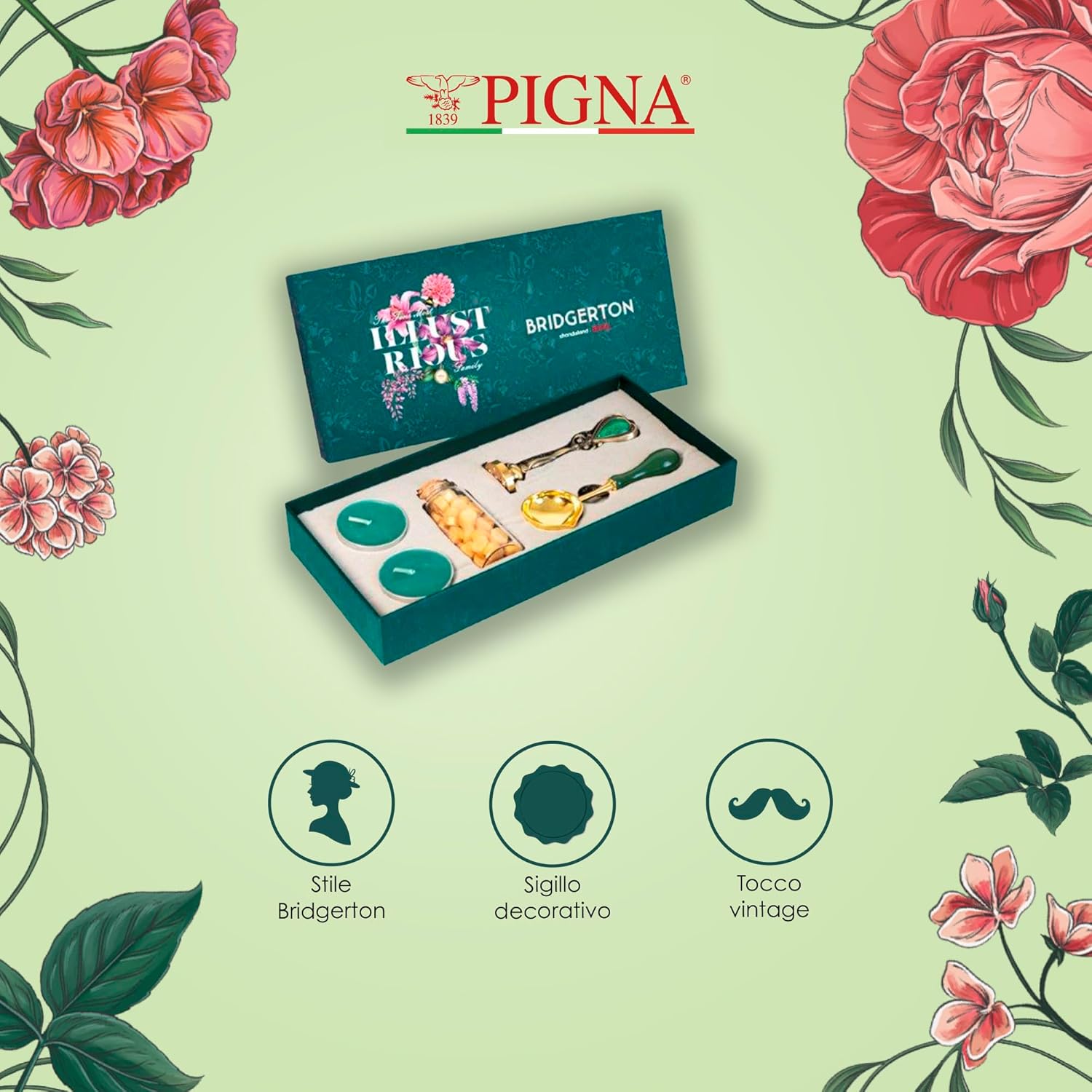 Scopri il fascino della scrittura d'altri tempi con il set timbro e ceralacca Pigna ispirato alla celebre serie Bridgerton. Un prodotto esclusivo, perfetto per chi ama distinguersi con stile e raffinatezza. In una scatola decorativa con dettagli floreali, ideale come regalo. Contiene un timbro con manico lavorato e finemente inciso, un cucchiaio dorato per sciogliere, due candele e un contenitore con perle di cera. Per celebrare questa serie iconica, Pigna collabora per la prima volta con Netflix e arricchisce la sua collezione con elementi delicati, floreali e colorati che riflettono l'atmosfera romantica e vivace di questa serie, rendendo omaggio al mondo elegante e intrigante dell'alta società inglese di inizio Ottocento. Bridgerton, la serie televisiva creata da Chris Van Dusen e prodotta da Shonda Rhimes, è basata sui famosi romanzi di Julia Quinn ed è ambientata nell'alta società londinese durante la Reggenza inglese. Fondata nel 1839, Pigna è un'azienda di eccellenza nel settore della cancelleria. Con quasi due secoli di esperienza, unisce tradizione e innovazione. Oltre ai quaderni, propone prodotti per la scuola, l'ufficio e il tempo libero, unendo design, resistenza e qualità.