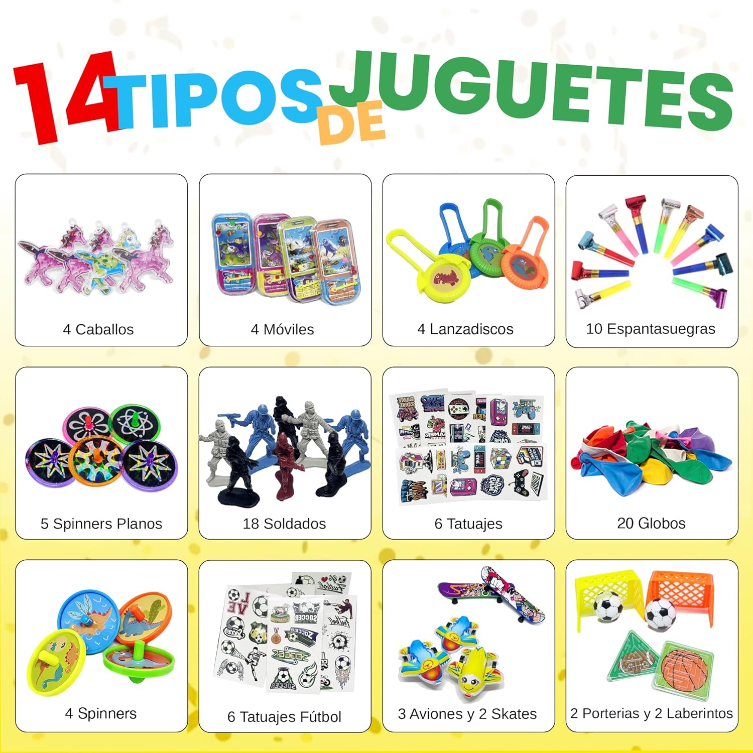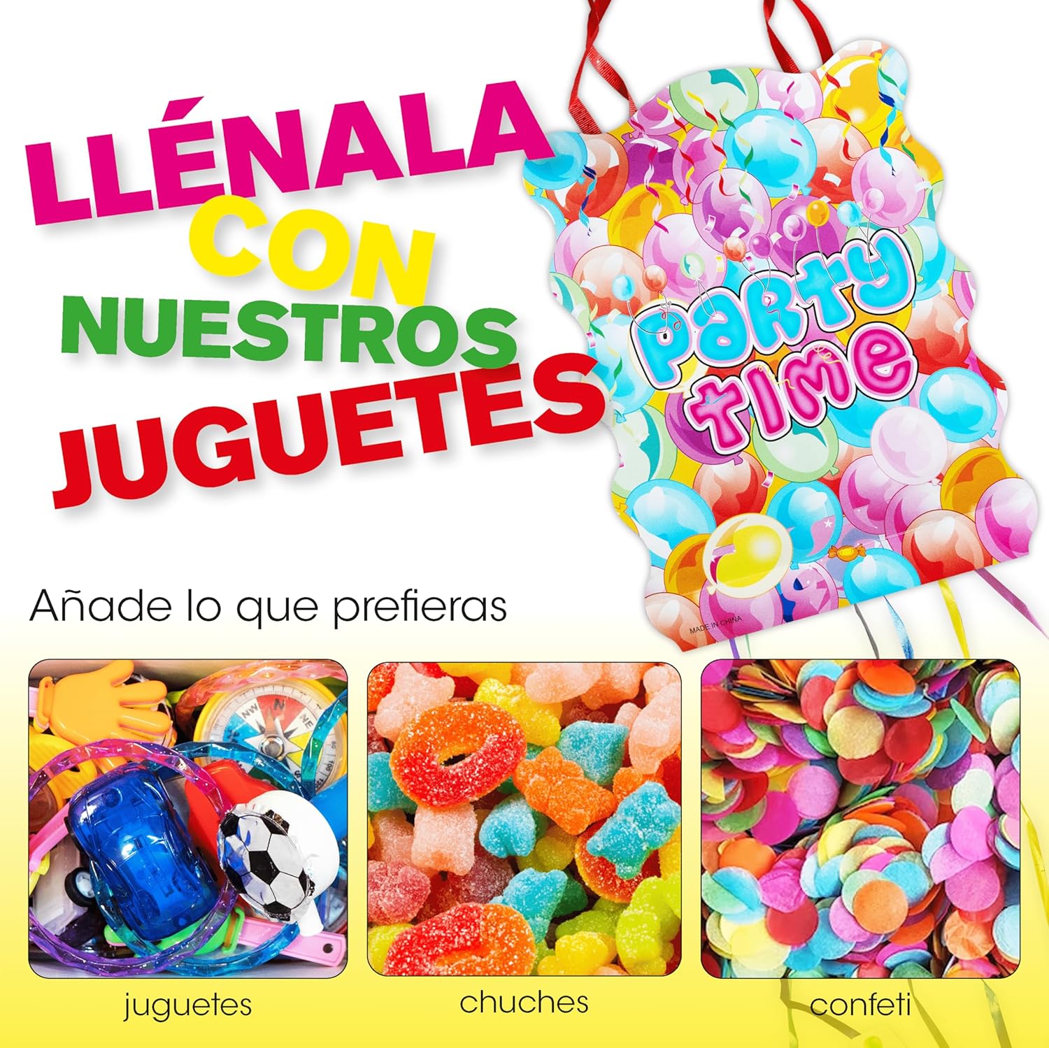 [FACILE DA USARE]: Pignatta con 80 giocattoli di peluche con cui giocare. Basta prendere i giocattoli e metterli all'interno della pignatta. Mettete quelli piccoli in basso e quelli più grandi in alto. Ora basta tirare le corde per farli cadere tutti e divertirsi con i giocattoli per pignatte per bambini. [UN'AMPIA VARIETÀ DI GIOCATTOLI]: Oltre alla pignatta, contiene 80 giochini per feste di compleanno bambini, di cui 12 tipi di pignatte per bambini. Automobili, palline gonfiabili, trottole, dischi volanti sorridenti, trombette... E MOLTI ALTRI! Nelle immagini potete vedere tutti i tipi di piñata di compleanno. [DIMENSIONE IDEALE:] La pignatta grande è perfetta per essere posizionata con i riempitivi per pignatte di compleanno per bambini. Le misure sono 40x30x8cm, ideali per posizionare la pignatta con riempimento in qualsiasi spazio dove si festeggia il compleanno. [QUALITÀ PREMIUM]: La pignatta è realizzata in cartone pieghevole di alta qualità per adattarsi ai giocattoli pignatta per bambini senza rompersi. Grazie a questi materiali, il riempimento della pignatta può essere inserito nella pignatta, garantendo che la pignatta e i giocattoli siano forti e resistenti per ore di divertimento. [RIEMPIRE A PROPRIO PIACIMENTO]: Questa pignatta compleanno bambino comprende 80 giocattoli molto vari. Inoltre, è possibile riempirla con ciò che si preferisce, come caramelle, coriandoli, maschere... Per godervi la vostra festa di compleanno con una pignatta a vostro piacimento. [FACILE DA MONTARE]: La pignatta di compleanno viene consegnata per essere montata facilmente. Bastano pochi semplici passaggi per essere pronti per la festa, senza bisogno di strumenti o abilità particolari. La pentolaccia è molto facile da usare. [DESIGN COLORATO E ATTRAENTE]: La pignatta compleanno bambina ha un design vivace e colorato che catturerà l'attenzione dei bambini presenti alla festa di compleanno e sarà un'ulteriore attrazione per qualsiasi festa di compleanno.
