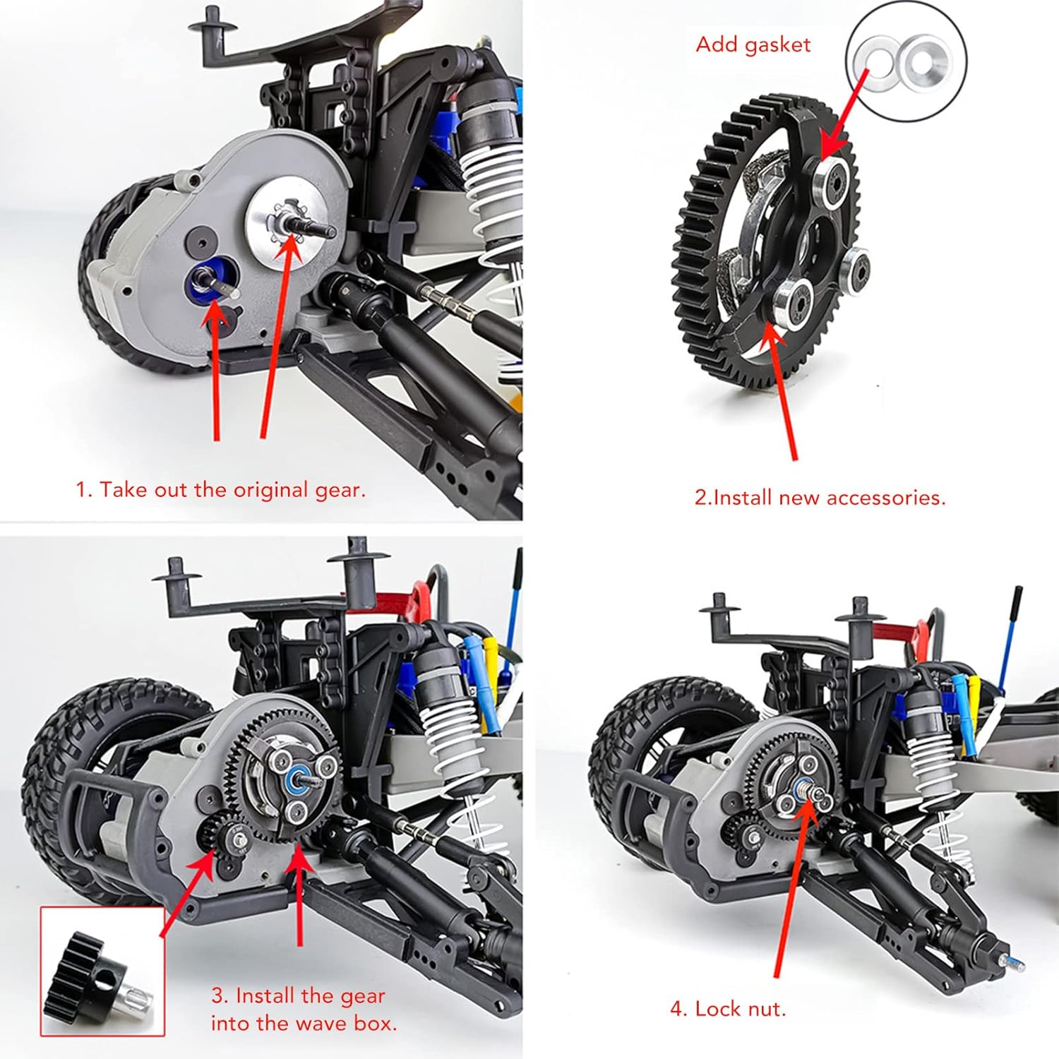 【Velocità personalizzabile】 Controlla facilmente la velocità del tuo veicolo RC utilizzando i piccoli ingranaggi da 3 pezzi inclusi con 16T, 18T e 20T, che si accoppiano perfettamente con il grande ingranaggio da 52T. Questa versatilità nei rapporti di trasmissione consente un'esperienza di guida su misura, sia che tu stia cercando velocità o controllo 【Compatibilità perfetta】 Progettato con questo set di ingranaggi è adatto per il veicolo telecomandato 1/10. Il design standard dell'ingranaggio cilindrico garantisce aderenza e vestibilità, migliorando le prestazioni generali e la manovrabilità della tua auto RC 【Stabilità affidabile】 Goditi una corsa stabile e sicura con la garanzia di un cambio accurato. Il pignone è realizzato per garantire stabilità in varie condizioni stradali, offrendo un'esperienza di guida sicura e affidabile. 【Materiale di alta qualità】 Realizzato in acciaio di alta qualità, il set di ingranaggi cilindrici e pignone vanta resistenza all'usura. Questo materiale garantisce una lunga durata rendendolo la scelta ideale per gli appassionati che richiedono prestazioni e longevità dai loro veicoli RC 【Installazione semplice】 Dimensioni compatte e peso leggero, questo set di ingranaggi è progettato per un'installazione comoda e rapida. Con tutti i componenti necessari inclusi, avrai la tua auto RC installata e funzionante in pochi minuti, permettendoti di dedicarti a ciò che conta di più: il brivido della guida