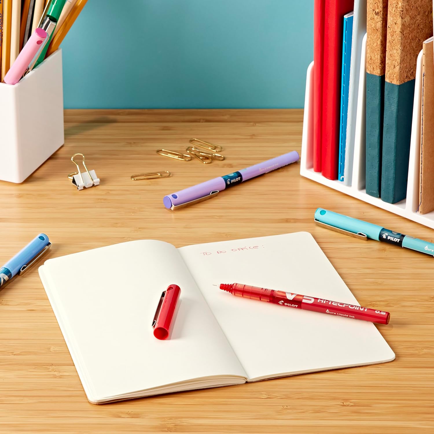 Penna a sfera V5 Hi-Tecpoint Pilot di alta qualità (pennino da 0,5 mm / punta da 0,3 mm), spesso copiata e mai abbinata. Inchiostro liquido per una scrittura liscia e duratura. Colori vivaci con punta speciale unica di alta precisione. Sistema a sfera per una scrittura fluida e fluida. Il regolatore di flusso garantisce un flusso regolare di inchiostro. Gamma di 7 colori: nero, rosso, blu, verde, viola, rosa e azzurro. In confezioni da 1, 3, 6, 12 pezzi e colori assortiti.