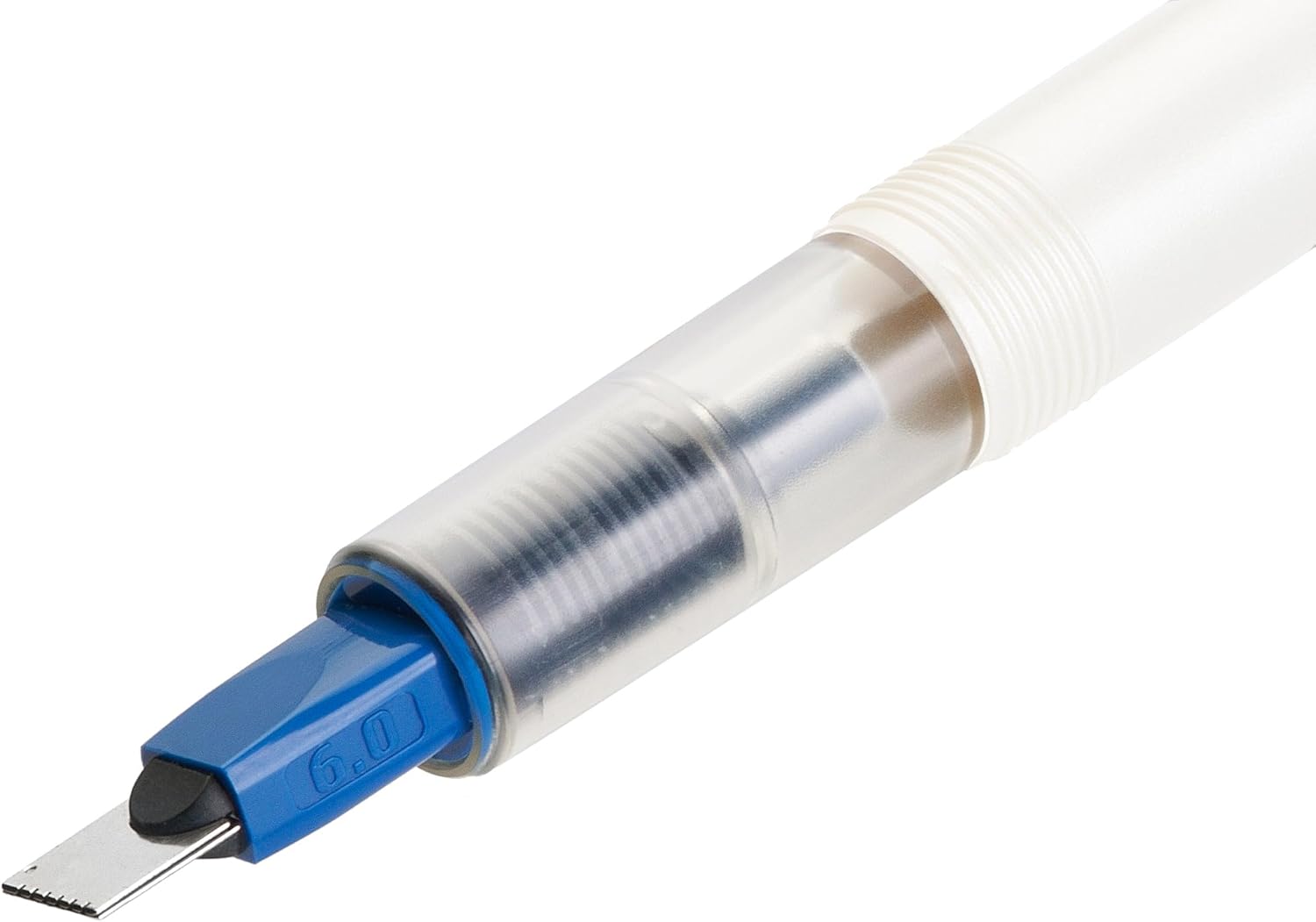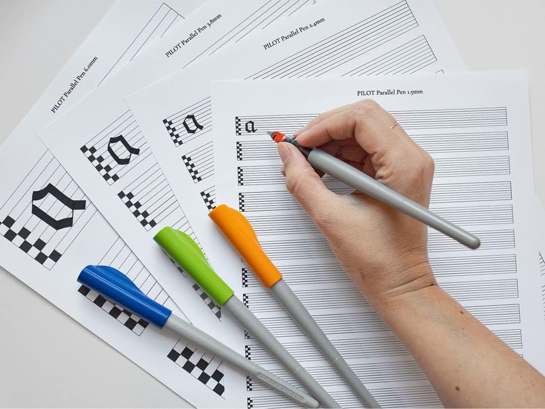 L’arte della calligrafia è alla portata di tutti: la penna stilografica Pilot Parallel Pen è dotata di un pennino per calligrafia in resistente acciaio inossidabile che scorre delicato sulla carta. Con questo kit per la calligrafia puoi creare lettere eleganti, splendide decorazioni e testi con un magnifico tratto. Penna stilografica con doppia lama irrorata dalla giusta quantità di inchiostro grazie al regolatore Pilot. Il suo flusso perfetto consente di tracciare una linea perfetta, non importa la velocità di scrittura. Lo spessore della linea della penna stilografica per lettering cambia a seconda dell’angolo (da 0,5 mm a 1,3 mm). Penna calligrafica con livello di inchiostro visibile per evitarne l’esaurimento. La lunghezza del fusto della penna Parallel Pen Pilot consente un’impugnatura comoda e precisa adatta a quest’arte senza tempo. Questo kit con penna stilografica Pilot Parallel Pen contiene la penna, due cartucce di inchiostro IC-P3 (nero e rosso), una pipetta per pulire l’interno (per poter cambiare colore) e un foglio in plastica sottilissima per eliminare eventuali residui di fibra di carta impigliati nelle lame. Questa penna stilografica con cartucce è dotata di un pennino per calligrafia a doppia lama da 6,0 mm, le cui dimensioni sono riconoscibili dal colore rosso del cappuccio. Gli inchiostri mescolabili della penna Pilot per calligrafia ti consentono di creare splendide gradazioni di colore mettendo a contatto due pennini per qualche secondo.