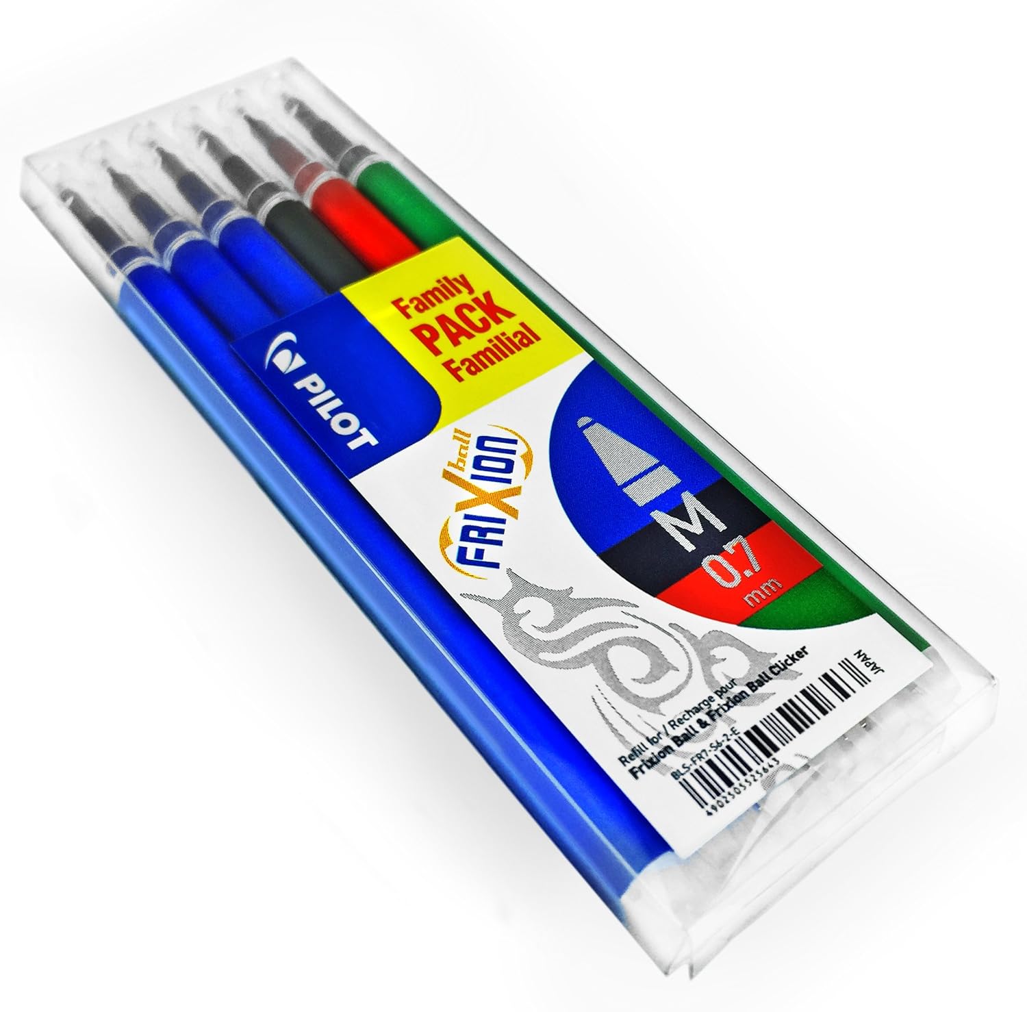 Confezione da 6 ricariche assortite per penna Pilot Frixion media da 0,7 mm. La tecnologia Hi-Tecpoint combinata con l'inchiostro Frixion assicura un'esperienza di scrittura fluida. L'esclusivo inchiostro Thermo Sensitive si cancella delicatamente per via del calore generato dalla frizione che rende l'inchiostro traslucido, rendendolo invisibile e non lascia residui. Pennino da 0,7 mm con linea da 0,35 mm. Questa confezione contiene 3 ricariche blu e 1 nera, rossa e verde, perfette per tutte le tue esigenze di scrittura.
