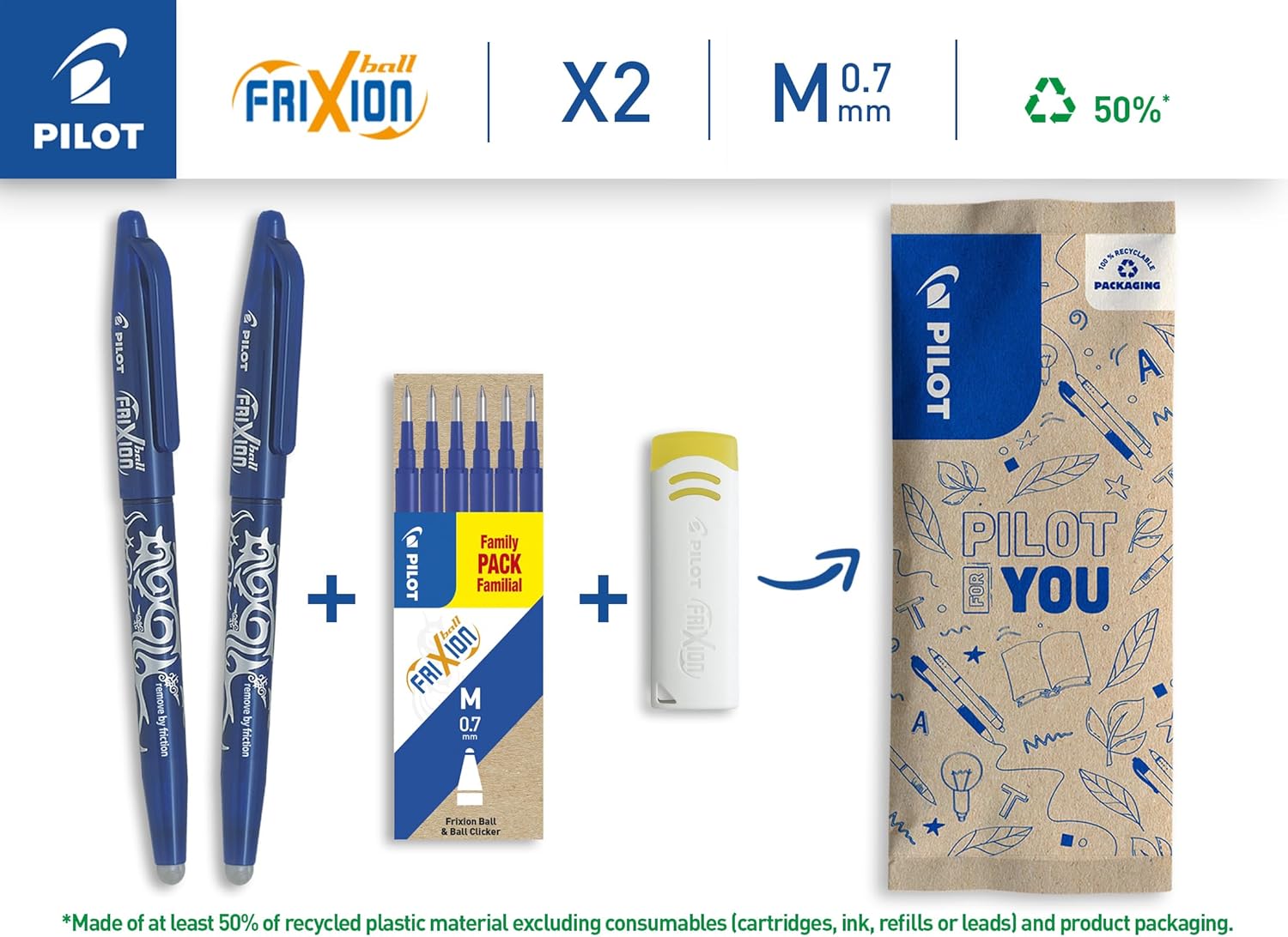 La penna a sfera cancellabile Frixion ti consente di scrivere, cancellare e riscrivere senza dover barrare a mano. Niente più pagine strappate per riscrivere daccapo, cancella solo ciò che vuoi senza lasciare traccia e riscrivi subito. La penna cancellabile Pilot Frixion Ball Clicker 0.7 offre un tratto di scrittura medio. La sua punta da 0,7 mm resiste a cadute e urti e ti consente di scrivere senza sbavature. Perfetta per appunti, compiti, riassunti o per libri di testo. Penna a sfera cancellabile ergonomica 2 in 1 molto pratica. Se cambi idea o fai errori basta cancellare con l’apposito gommino. Per una scrittura sempre chiara, leggibile e senza macchie di cancellature. Risparmi tempo e puoi concentrarti sul tuo lavoro. Penna con inchiostro termosensibile PILOT: la penna a inchiostro gel cancellabile che garantisce una scrittura scorrevole, comoda da usare. Frixion Ball è disponibile in 15 diversi colori, tutti cancellabili e ricaricabili. La penna roller ergonomica Frixion di Pilot è realizzata per almeno il 50% in plastica riciclata ed è ricaricabile, quindi economica e a lunga durata. Pilot si impegna per l’ambiente. Inchiostro cancellabile, uso sconsigliato su documenti ufficiali.