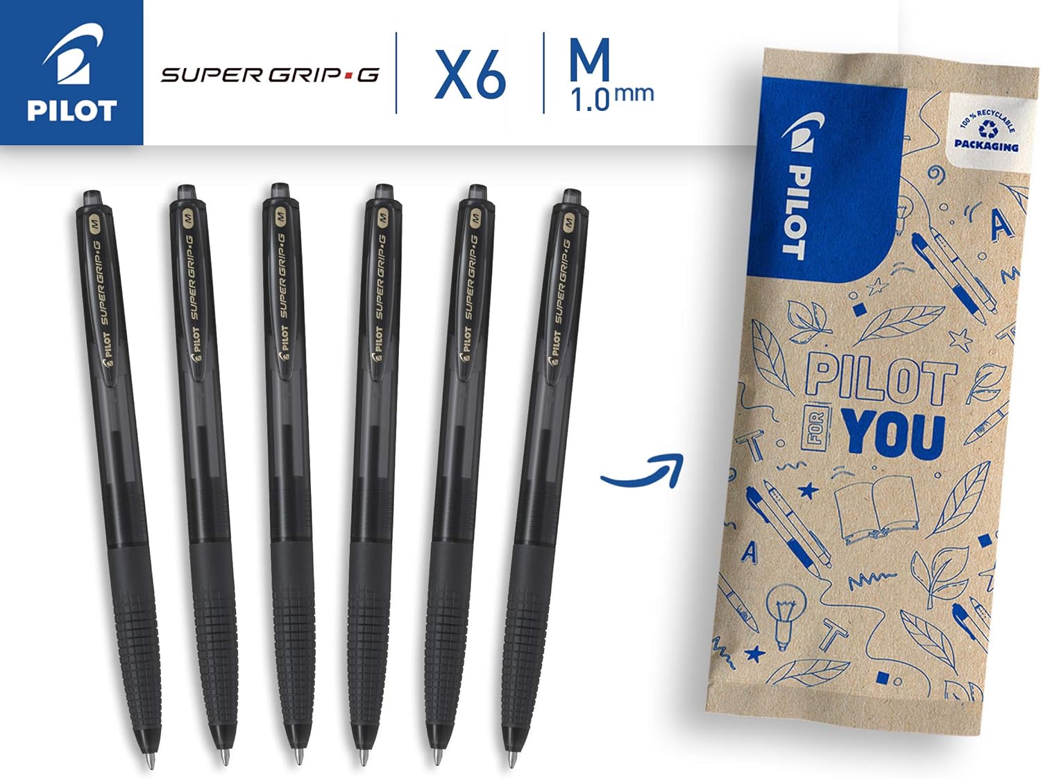 Penna a sfera Pilot con inchiostro a bassa viscosità che garantisce una scrittura comoda e si asciuga immediatamente sulla carta. Il flusso di inchiostro si adatta a diverse velocità di scrittura evitando macchie. Questa penna a sfera con impugnatura pensata appositamente per garantire un maggior controllo e per scrivere senza macchie, è comoda da usare anche per diverse ore. Penna a Sfera a Scatto: impossibile perderne il cappuccio. In un solo clic, la penna Pilot Super Grip G è pronta per scrivere anche dopo giorni o settimane senza essere stata utilizzata. Dotata di clip, si può agganciare a tutti i tuoi documenti. Penna a sfera comoda dal corpo resistente all’usura e ai morsi. La penna Super Grip G è dotata di una punta in carburo di tungsteno indeformabile e resistente a cadute e urti, che assicura una scrittura perfetta e di lunga durata. Questo set da 6 penne a sfera con punta media da 1 mm (tratto da 0,27 mm) e inchiostro blu a bassa viscosità è conforme allo standard ISO 12757-2 che assicura la leggibilità della scrittura nel corso del tempo e quindi garantisce un uso sicuro, perfetto per documenti amministrativi o da archiviare. Penna a sfera a inchiostro per una scrittura di lunga durata, tutta la qualità e l’esperienza di Pilot in un design lineare al miglior prezzo.