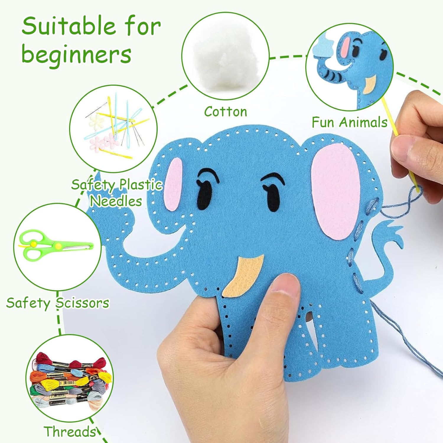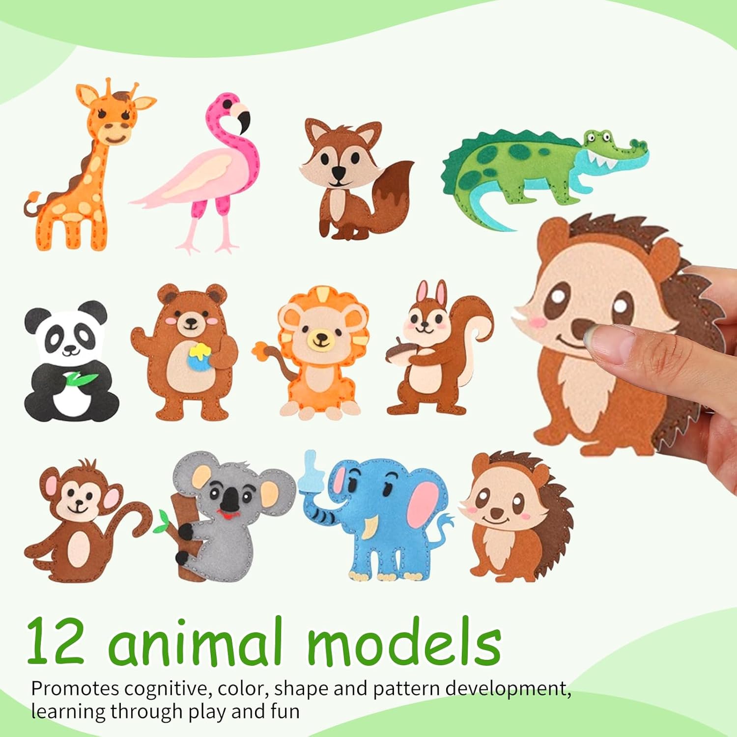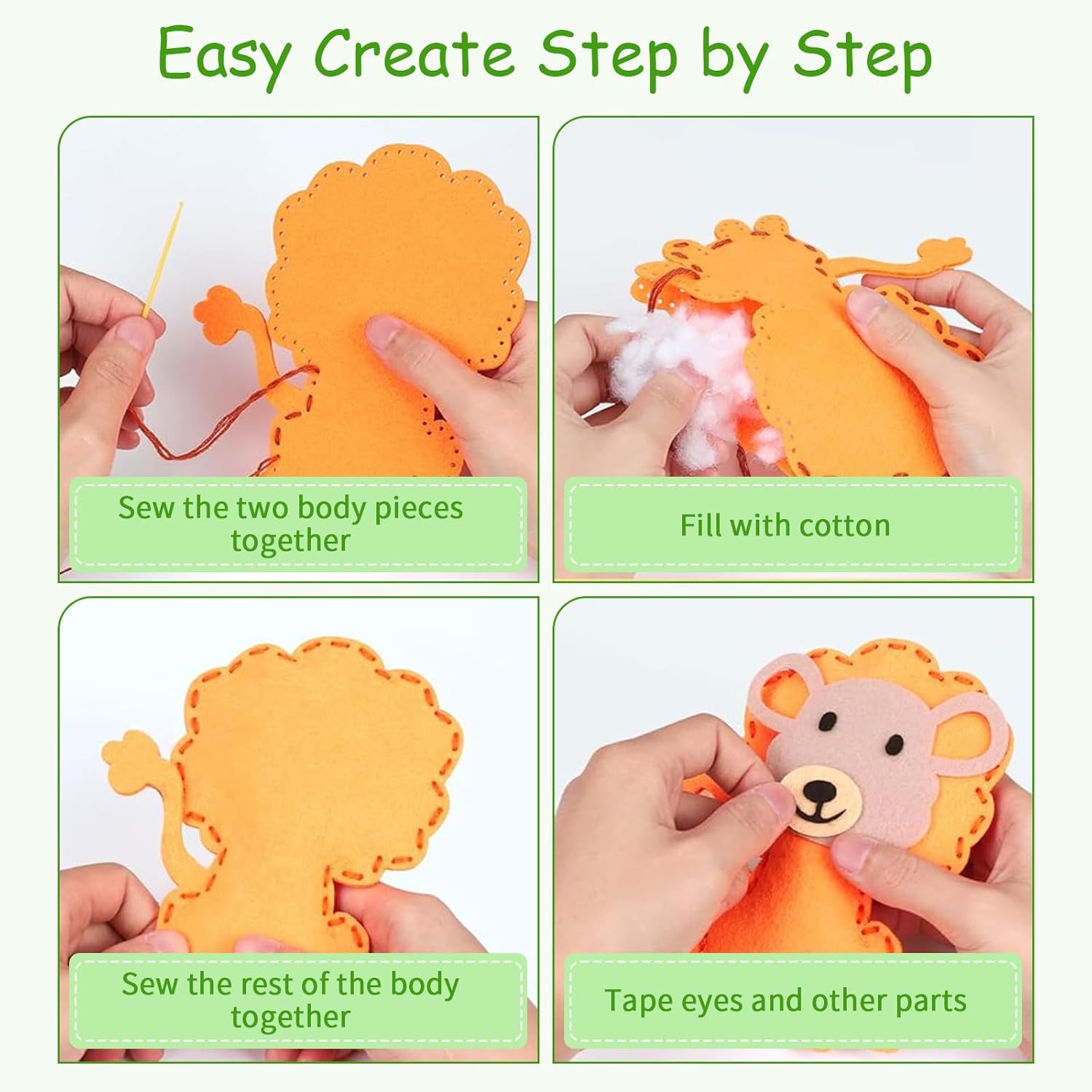 Design a Tema Animale: Questo Lavoretti Creativi Per Bambini è ispirato a piccoli animali che sono popolari tra i bambini, con una forma carina e mini, e i bambini sono pieni di interesse e felicità quando giocano Funzione di Educazione Precoce: Questo Feltro per Lavoretti consente ai bambini di apprendere le abilità di ricamo e cucito, che possono esercitare la coordinazione occhio-mano, le capacità motorie e la pazienza dei bambini Fai da te Interattivo: Questo Set Cucito Bambini contiene gli strumenti e i materiali da cucito necessari, come feltro, filo, aghi, forbici, ecc., che possono essere trasportati quando si visitano i parenti o si va in vacanza Materiale Sicuro: Questo Kit Cucito Bambina è realizzato in feltro di alta qualità, morbido e piacevole al tatto e non irrita la pelle del tuo bambino Versatile: Questo Set da Cucito per Bambini sarà un ottimo regalo per la festa di compleanno di un bambino, Halloween, Natale, Capodanno o qualsiasi altra occasione ed è un ottimo strumento per l'interazione di genitori e figli