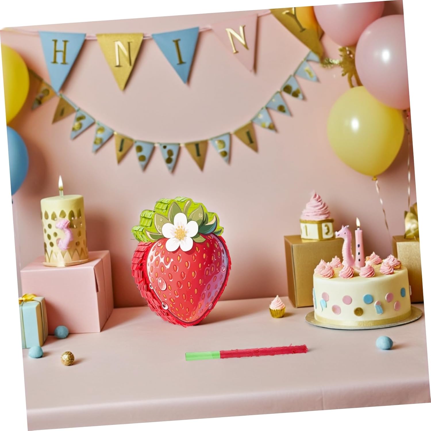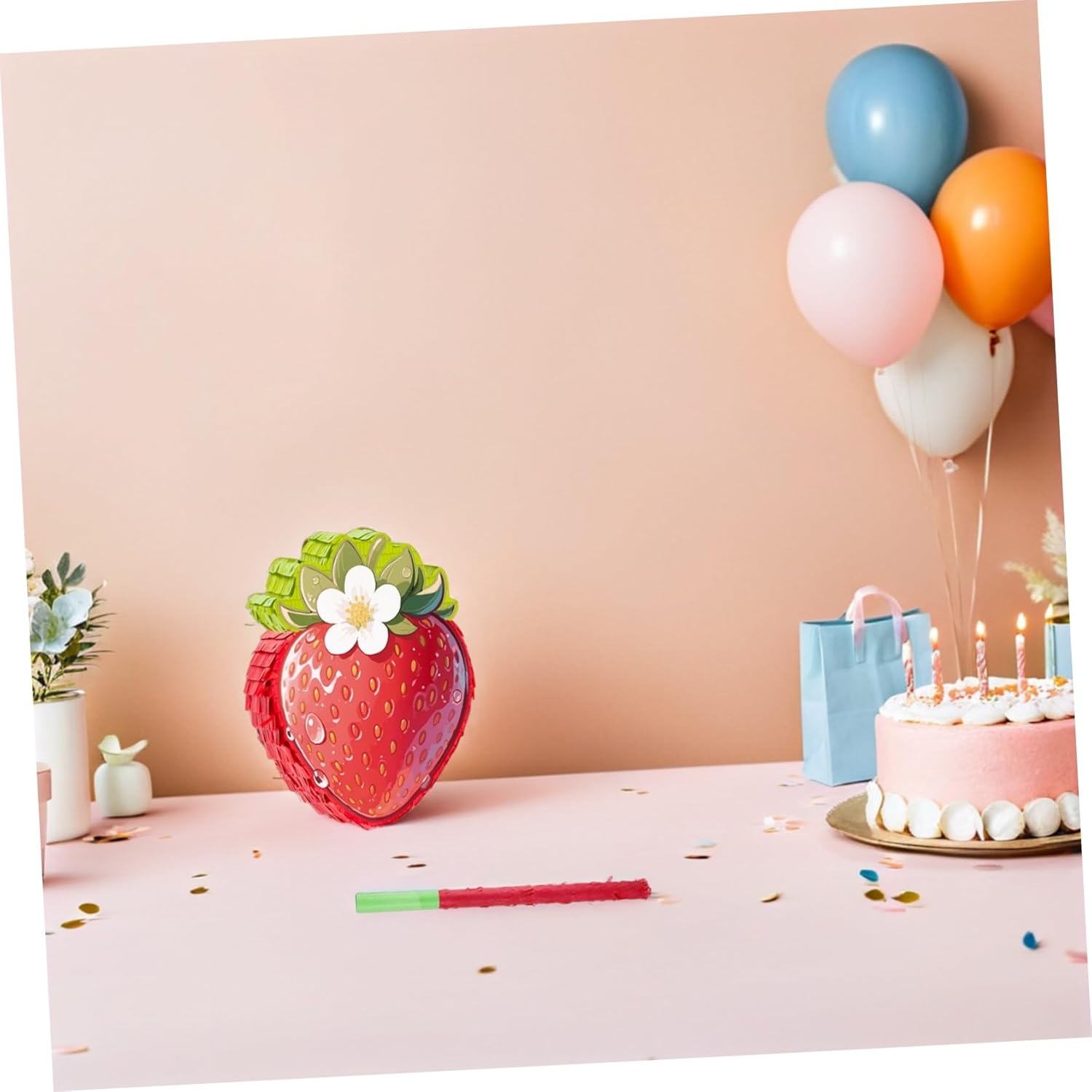 MULTIUSO: Serve come decorazione per regali di compleanno alla fragola o come festa alla fragola, migliorando l'atmosfera delle decorazioni per feste a tema fragola, giochi di cibo per feste con gli occhi bendati e piñata 3D con bastoncino Giochi per feste Cinco de Mayo Comodo da riempire e appendere: progettato con un robusto anello per appenderlo e un foro di riempimento facile da usare, da riempire con coriandoli, decorazioni per feste con cibo o regali per feste, piñata alla fragola, accessori per feste di compleanno alla fragola, divertenti giochi di piñata con gli occhi bendati Per qualsiasi evento: ideale come decorazione per il Cinco de Piñata di maionese, come decorazione per la prima festa di compleanno con fragole o come attività di piñata per feste di compleanno con cibo. Questo rende ogni celebrazione qualcosa di speciale. come festa alle fragole o come piñata di compleanno per la festa di compleanno del Cinco de Mayo Costruzione: questa piñata alle fragole è realizzata in cartone e decorata con carta crespa. È un'aggiunta robusta e vivace alle decorazioni per le feste di compleanno alle fragole, alle decorazioni per le feste con cibo e alle divertenti piñata alle fragole