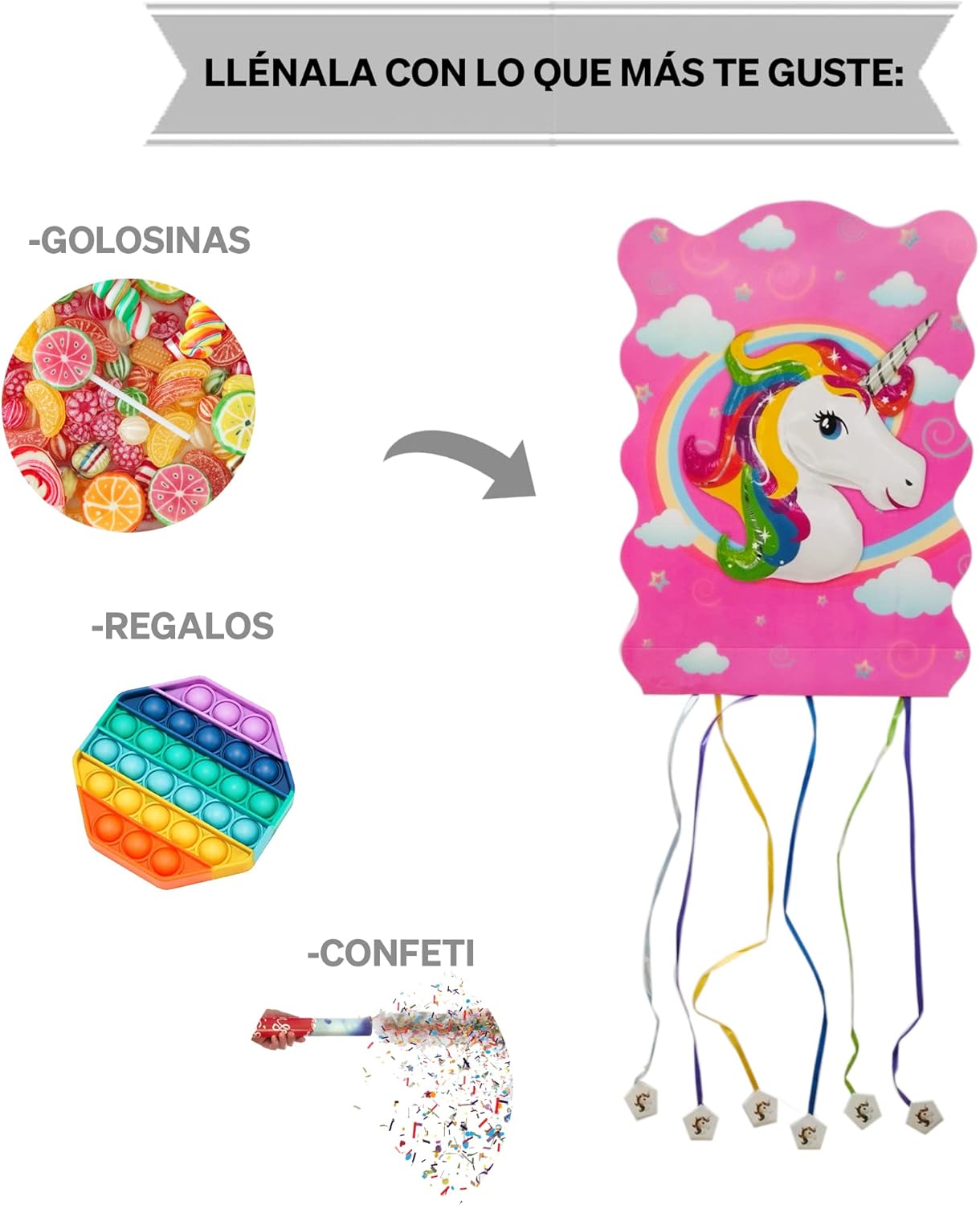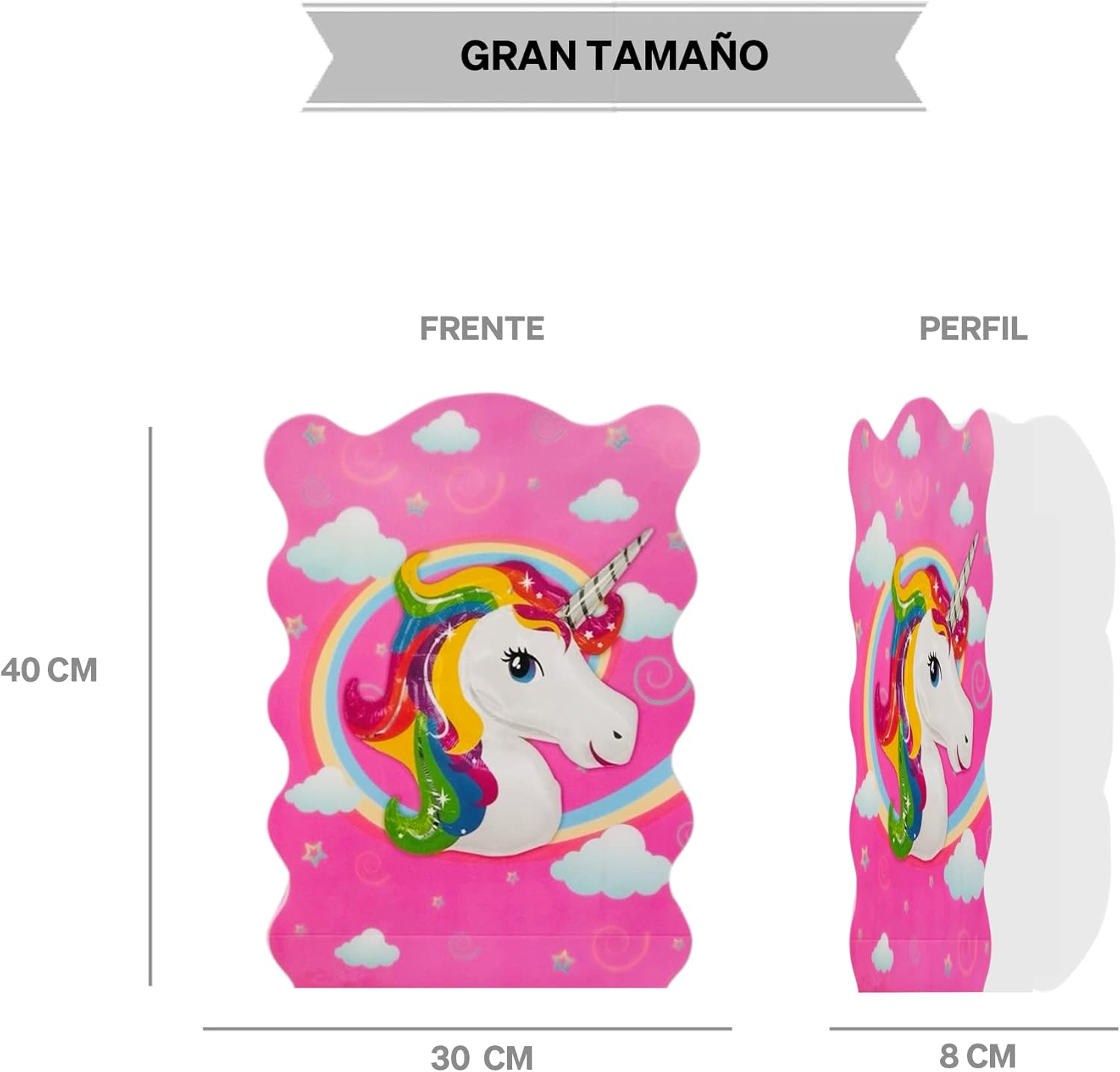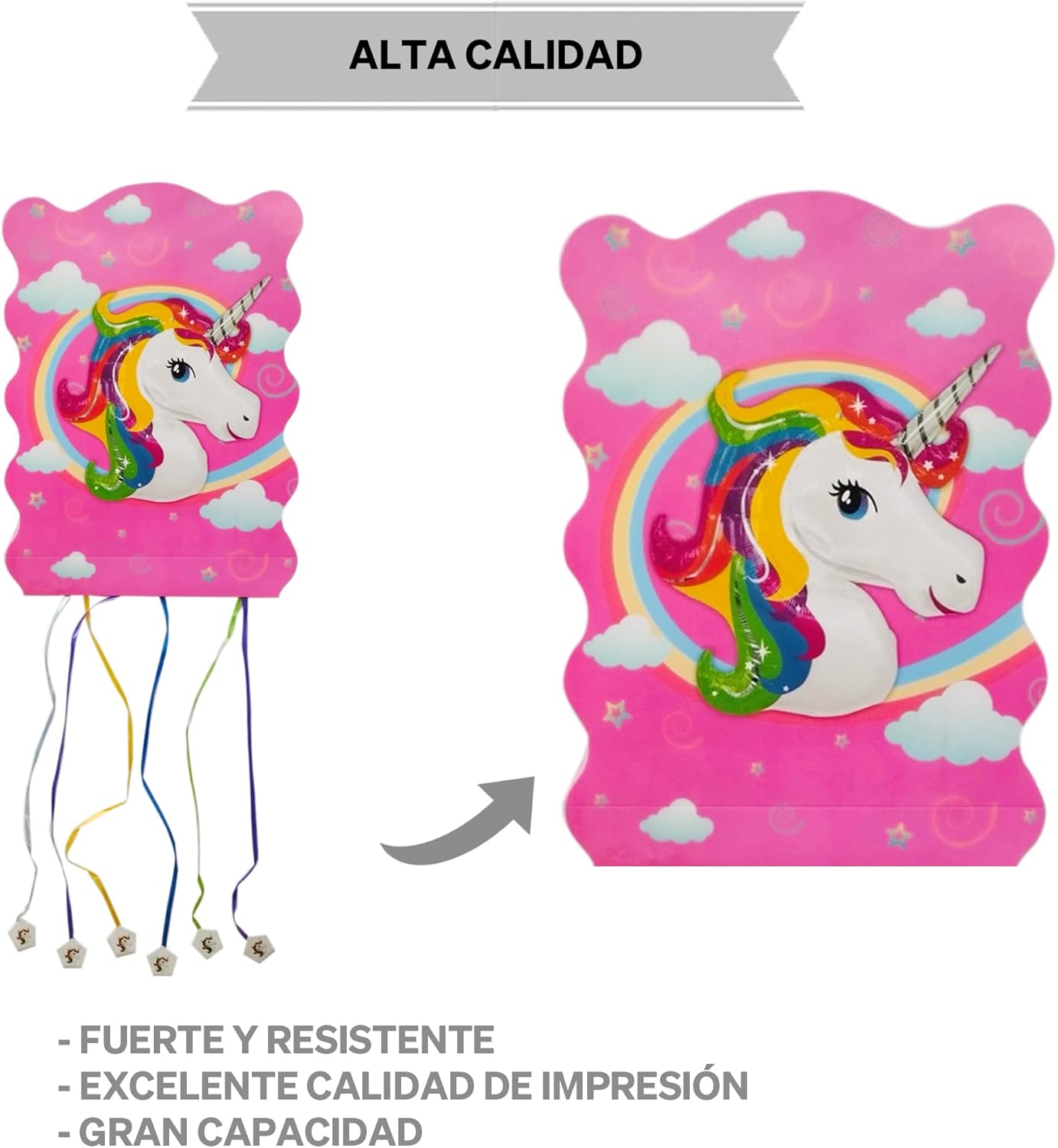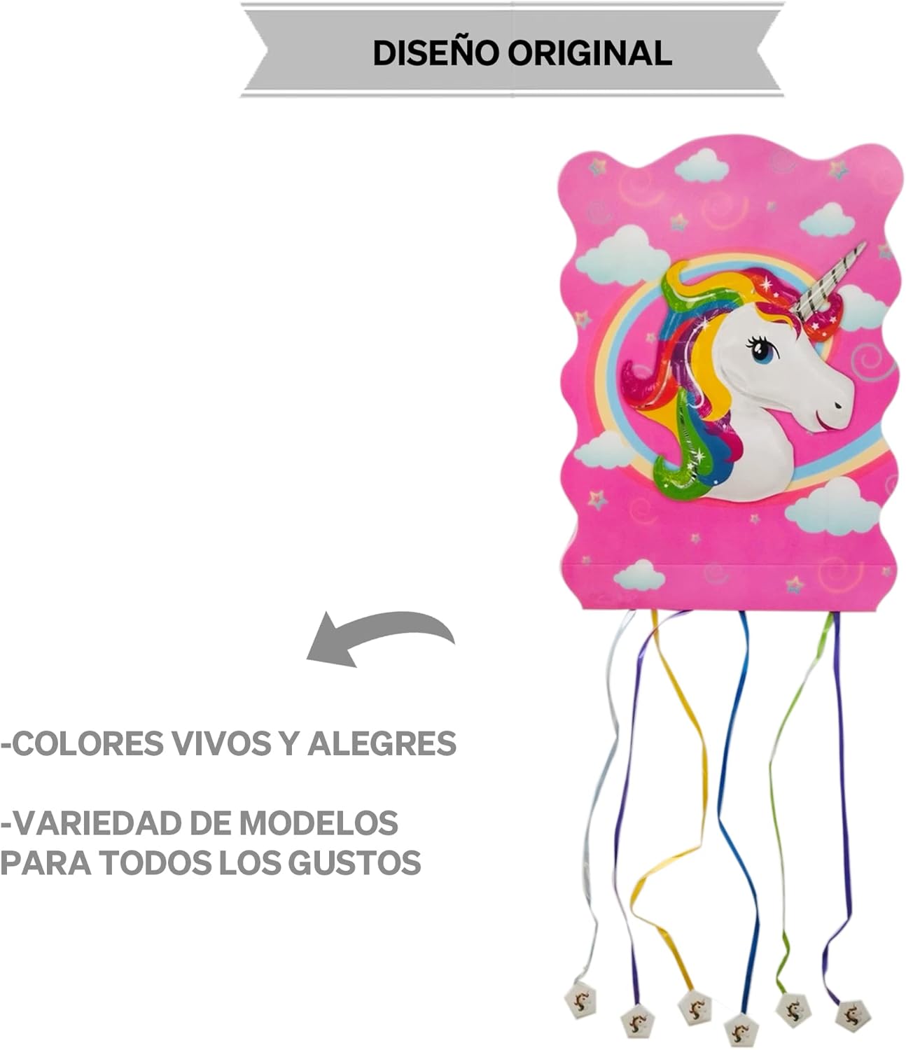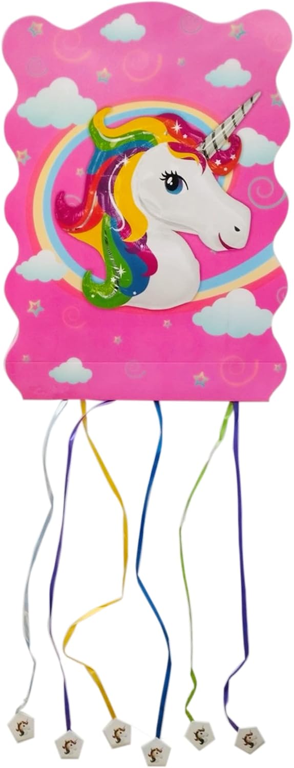 La confezione include una pinata di compleanno con unicorno rosa. Dimensioni: 45 x 32 x 8 cm Alta qualità: materiale solido, durevole e di grande capacità. Design originale: colori vivaci e disegni infantili di auto che i ragazzi e le ragazze adorano. Facile da preparare: riempi la pinata con caramelle, dolcetti, giocattoli, regali, coriandoli, ecc. e posizionala in una posizione elevata in modo che i bambini possano tirare i nastri. Divertente. Un gioco che emoziona i più piccoli a scoprire le sorprese al suo interno.