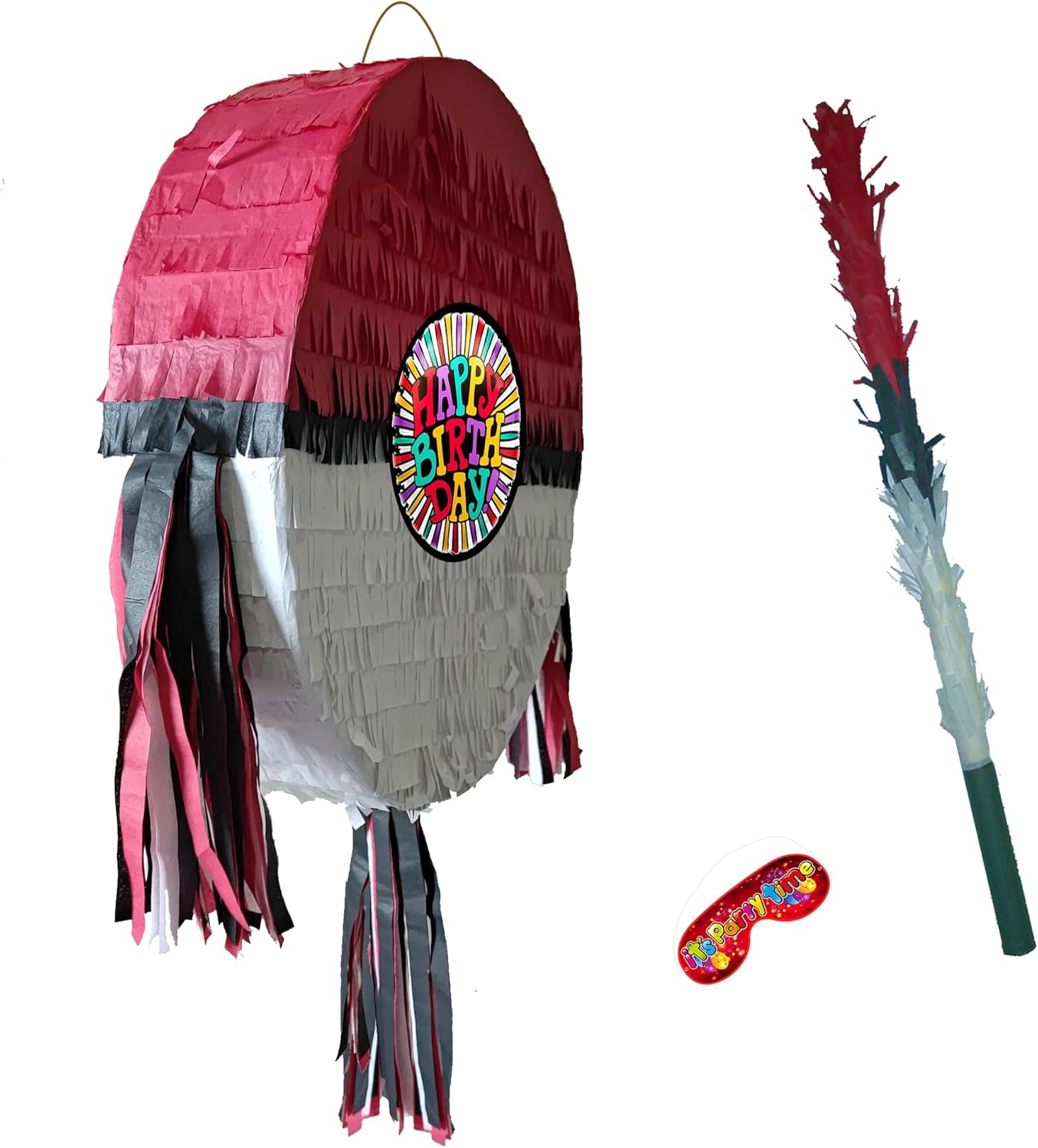 Piñata rotonda da 33 cm con bastoncino e caramelle. Contiene una finestra di riempimento e una cinghia di fissaggio. La piñata misura 34 cm di larghezza e 9 cm di profondità.