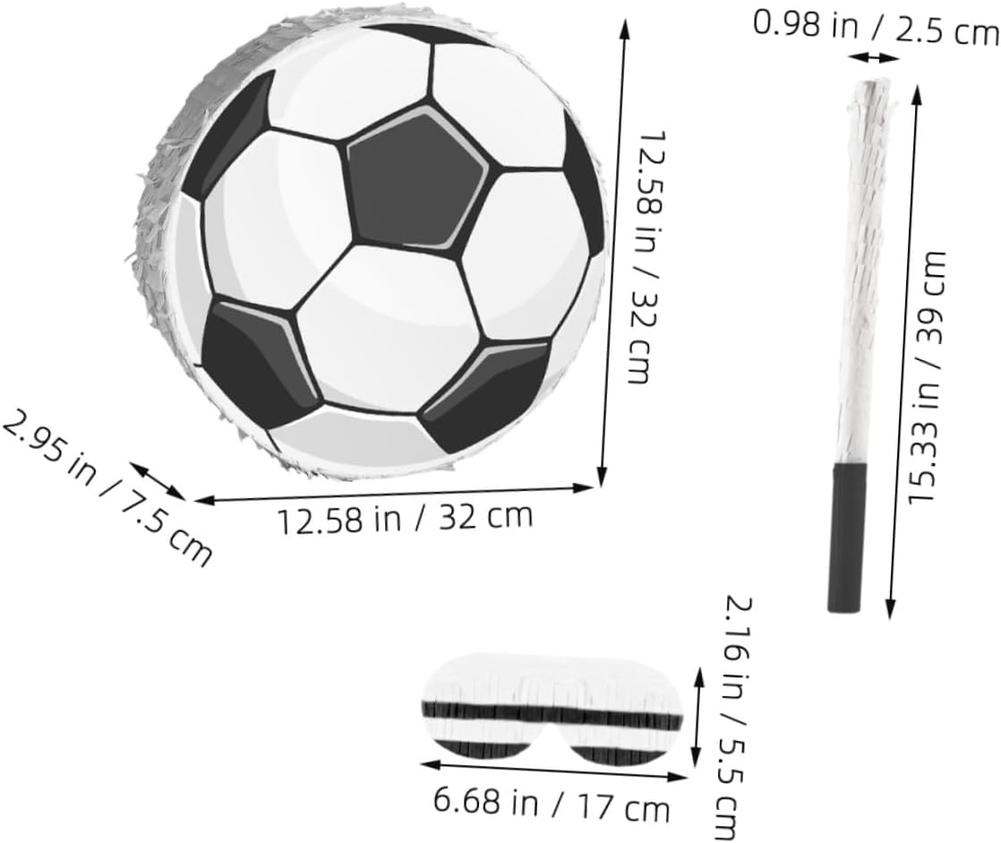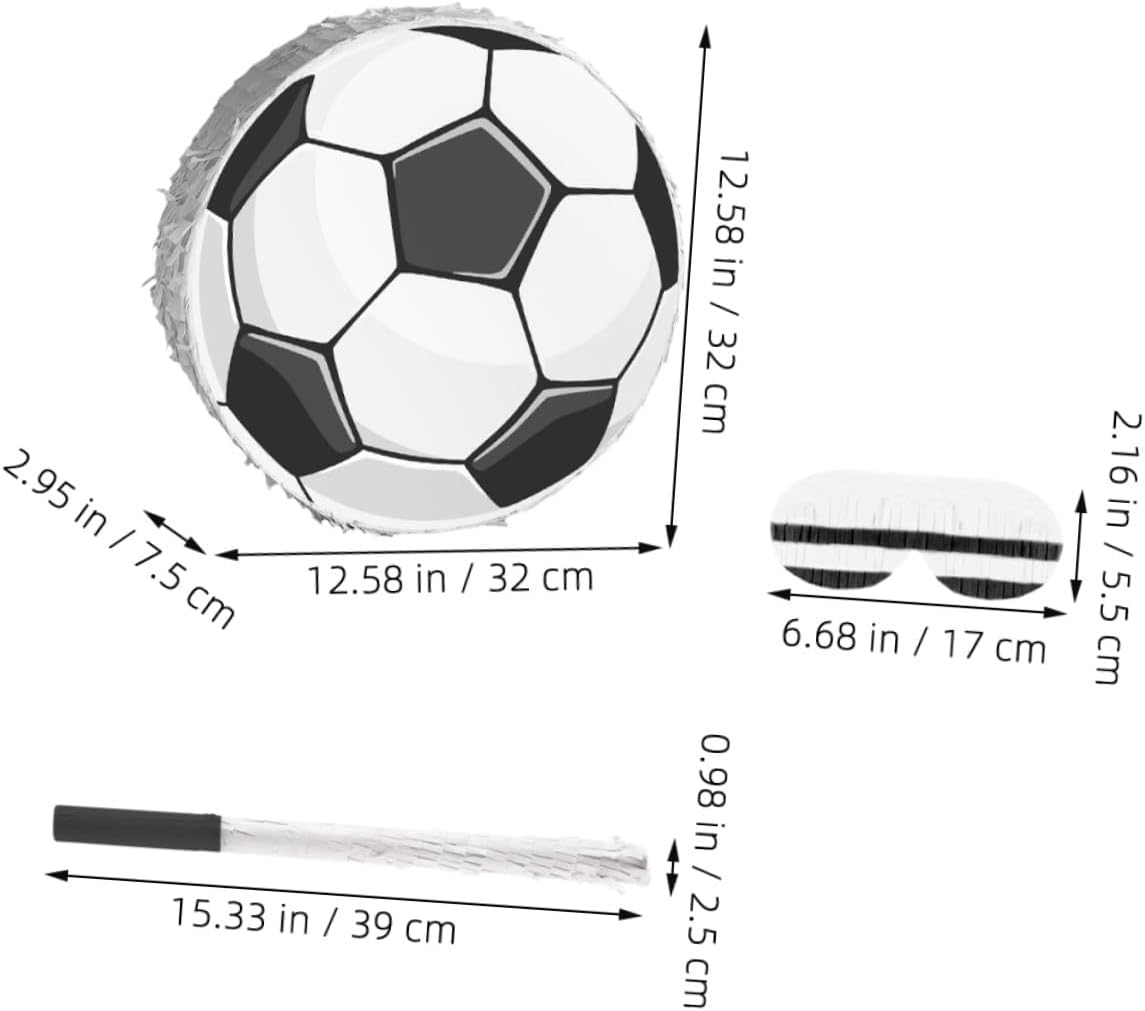Accessori divertenti: include una benda e un bastone, che rendono il gioco della piñata più emozionante e divertente, decorazione con il bastone della piñata, piñata a forma di pallone da calcio Facile da appendere: ha un anello per appenderla, così la piñata può essere facilmente appesa in posti diversi per una comoda decorazione, come decorazione per il calcio o come una piñata divertente Versatile: per diverse occasioni come feste di compleanno, feste scolastiche e feste a tema edilizio, ma può anche essere usata come supporto fotografico, piñata per feste o piñata di carta Uso multi-evento: adatto a varie occasioni come come feste di compleanno, eventi scolastici e feste a tema e può anche essere usato come supporto fotografico, bastone da piñata per festival, partite di calcio per Set completo: viene fornito con una benda e un bastone, che aggiunge ulteriore eccitazione quando cercano di rompere la piñata e rilasciare dolcetti. Bastoncino Piñata per compleanni, decorazioni per compleanni sportivi