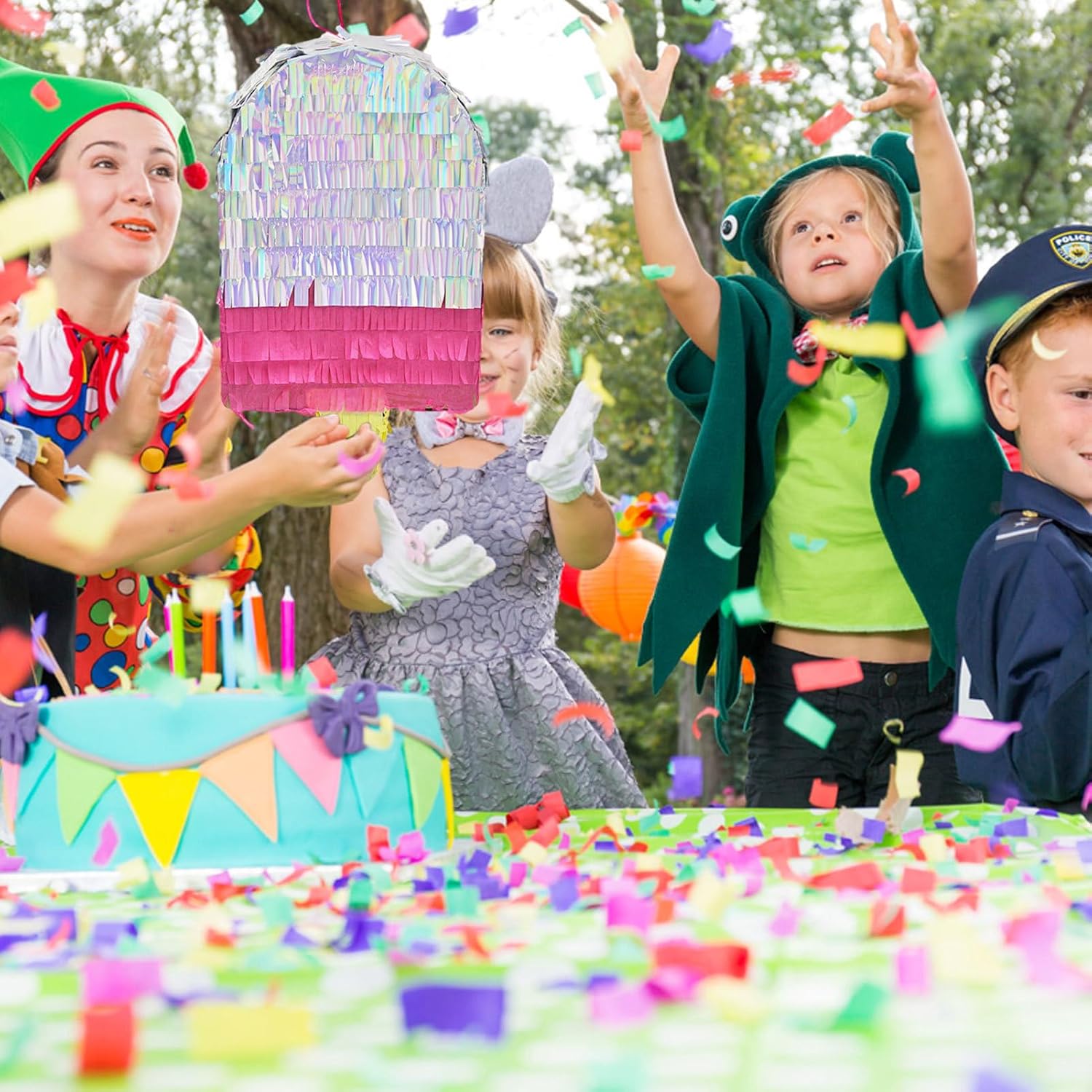 【Miglioramento dell'atmosfera】 I favori colorati della festa della piñata saranno molto belli per decorare case o alberi da giardino, il che può migliorare molto bene l'atmosfera. 【Facile da appendere】 Le piccole decorazioni di Carnival Piñata sono dotate di un cordino per appenderle facilmente. Puoi appenderli ovunque e non occupare molto spazio. Facile da riempire. Quindi puoi iniziare il gioco interessante del colpo di caramelle. Materiale di alta qualità: gli innovativi coni di compleanno a forma di pignatta non sono sottili vasi in polipropilene che possono essere lanciati dopo un singolo utilizzo. Ma ha un certo spessore e un buon lavoro e può essere riutilizzato la prossima volta! Senza odore, texture leggera, comoda da indossare. Ampio vetro di applicazione: la piñata colorata è perfetta per decorare feste hawaiane, decorazioni per feste tropicali, feste per adulti, feste per bambini e feste in spiaggia.