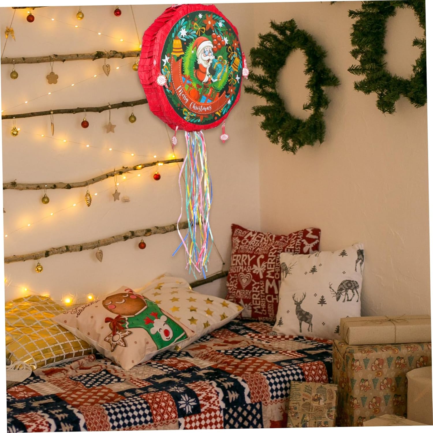 Piñata con motivo Babbo Natale: questa piñata con motivo Babbo Natale crea una forte atmosfera natalizia ed è l'ottima compagna per le vacanze e come decorazione della piñata. Piñata divertente: usa l'esclusiva piñata di Babbo Natale come decorazione unica da appendere per feste, decorazioni per la tavola, ecc., Forniture per feste decorative per piñata di Babbo Natale: pregevole fattura e dettagli, questa piñata ornamentale può riempire il tutto con un'atmosfera festosa, Piñata di Natale: design unico e raffinato, rende questo Babbo Natale così bello, con colori vivaci e aspetto vivido, Piñata di Natale Piñata di carta: sorprendi i tuoi ospiti con un'attività divertente e dolcetti, un divertente e interessante gioco di società per gli ospiti, un ciondolo per la festa