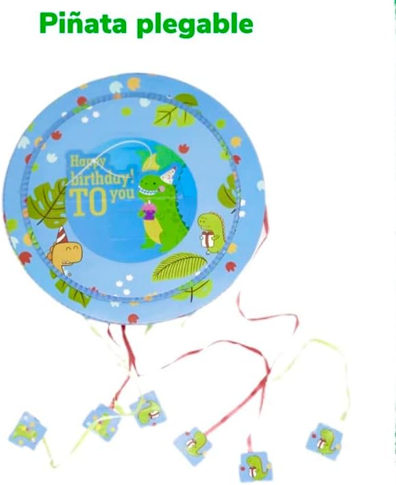 La confezione include una pignatta rotonda con un cake topper formale 3D e un disegno di dinosauro. Divertente. Un gioco che emoziona grandi e piccini a scoprire le sorprese al suo interno. Regalo ideale per feste di compleanno. Facile da preparare: riempi la pinata con caramelle, dolcetti, regali, coriandoli, ecc. e posizionala in una posizione elevata in modo che i bambini possano tirare i nastri. Stampa di alta qualità: design divertenti e colori duraturi. Design originale: colori vivaci e design che si adattano ai gusti di bambini, bambine e adulti.