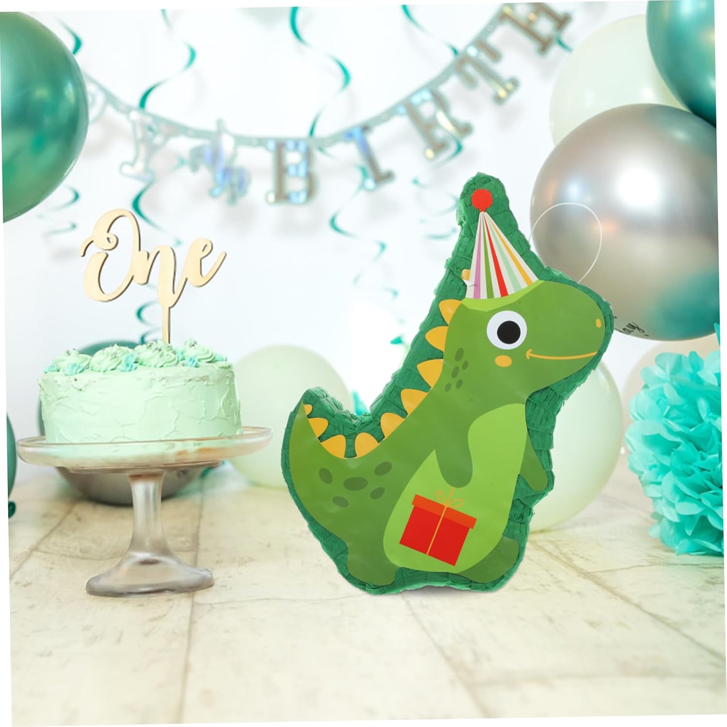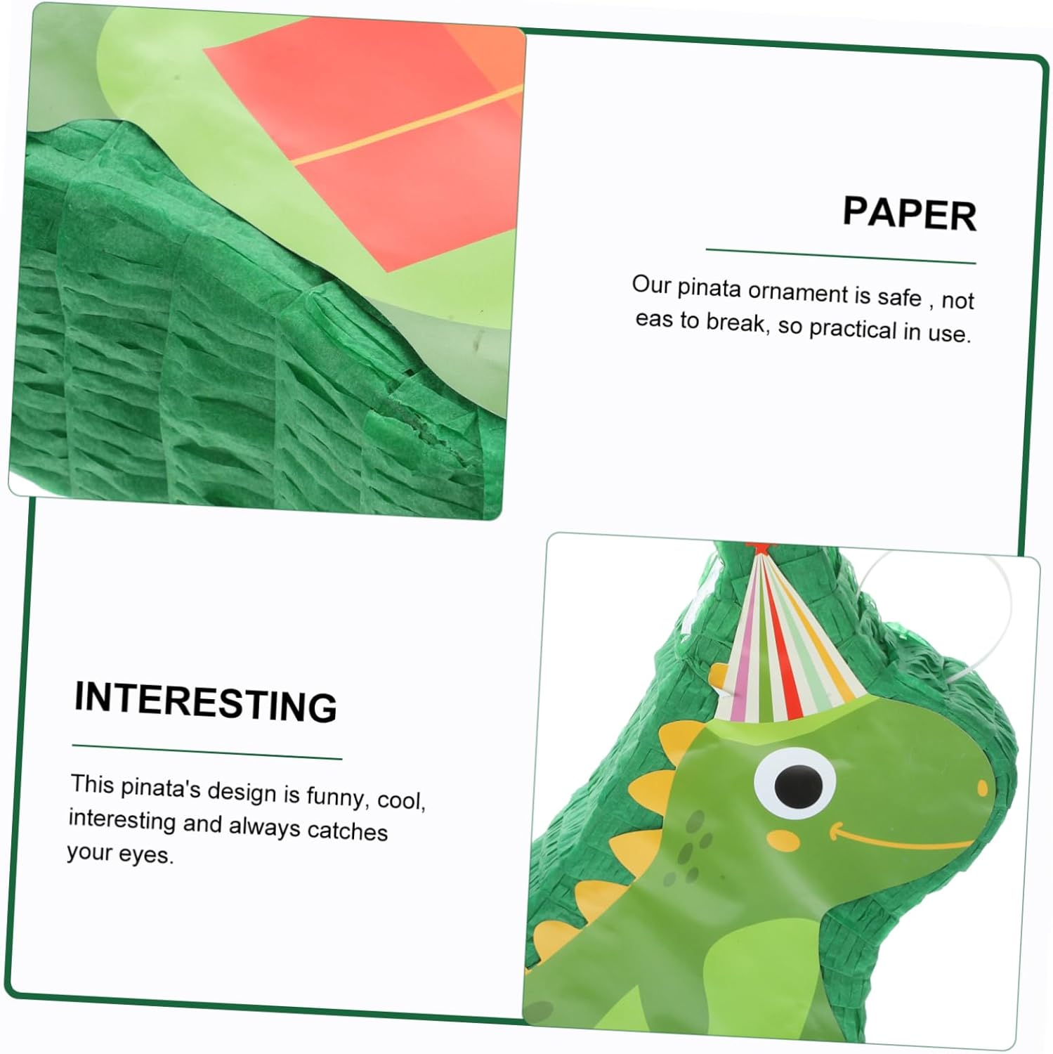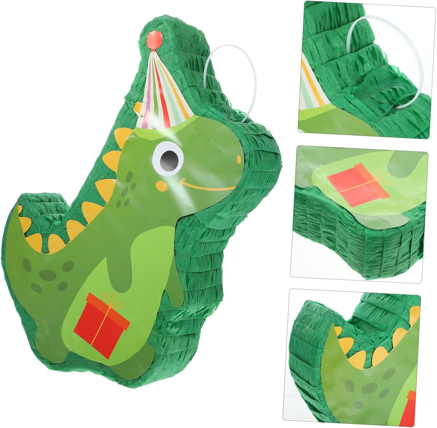 Piñata sospesa: il design divertente rende la tua festa più divertente e interessante. Usa la piñata di dinosauro come decorazione per le feste o chiedi agli ospiti di provare a turno a rompere la piñata per rilasciare tutte le caramelle all'interno. piñata per feste Piñata di dinosauro per feste: decora la festa o ovunque come cabina fotografica, ti aiuta a creare ricordi duraturi, decorazione piñata Piñata di dinosauro di carta: molto adatta per feste, feste di compleanno e festival o celebrazioni, piñata decorativa per feste: pregevole fattura e aspetto creativo, festosa e brillante, la gente lo adorerà, decorazioni di compleanno Piñata Decorazione piñata da appendere: la tradizionale piñata ha la forma di un dinosauro, che è molto popolare alle feste. Questa decorazione a forma di piñata attira l'attenzione con colori vivaci che fungono da decorazione per feste ed è perfetta anche come supporto fotografico o come decorazione a forma di piñata da appendere