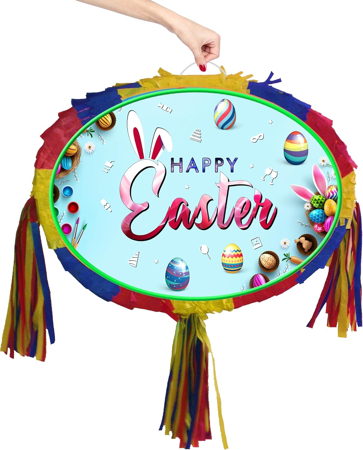 Ideale per Pasqua o festa di compleanno 2024. La pinata viene fornita con bastone e benda di carta. Pinata include finestra di riempimento e cinturino. Adatto sia a bambini che ad adulti. Unisex Realizzato in cartone e carta. La Pinata è vuota e può essere facilmente riempita con 1-2 kg di caramelle o mini giocattoli. La foto mostra la parte anteriore e posteriore della pinata. Ogni pagina con un design di stampa unico. La pinata è confezionata in sacchetto di plastica e imballata in cartone.