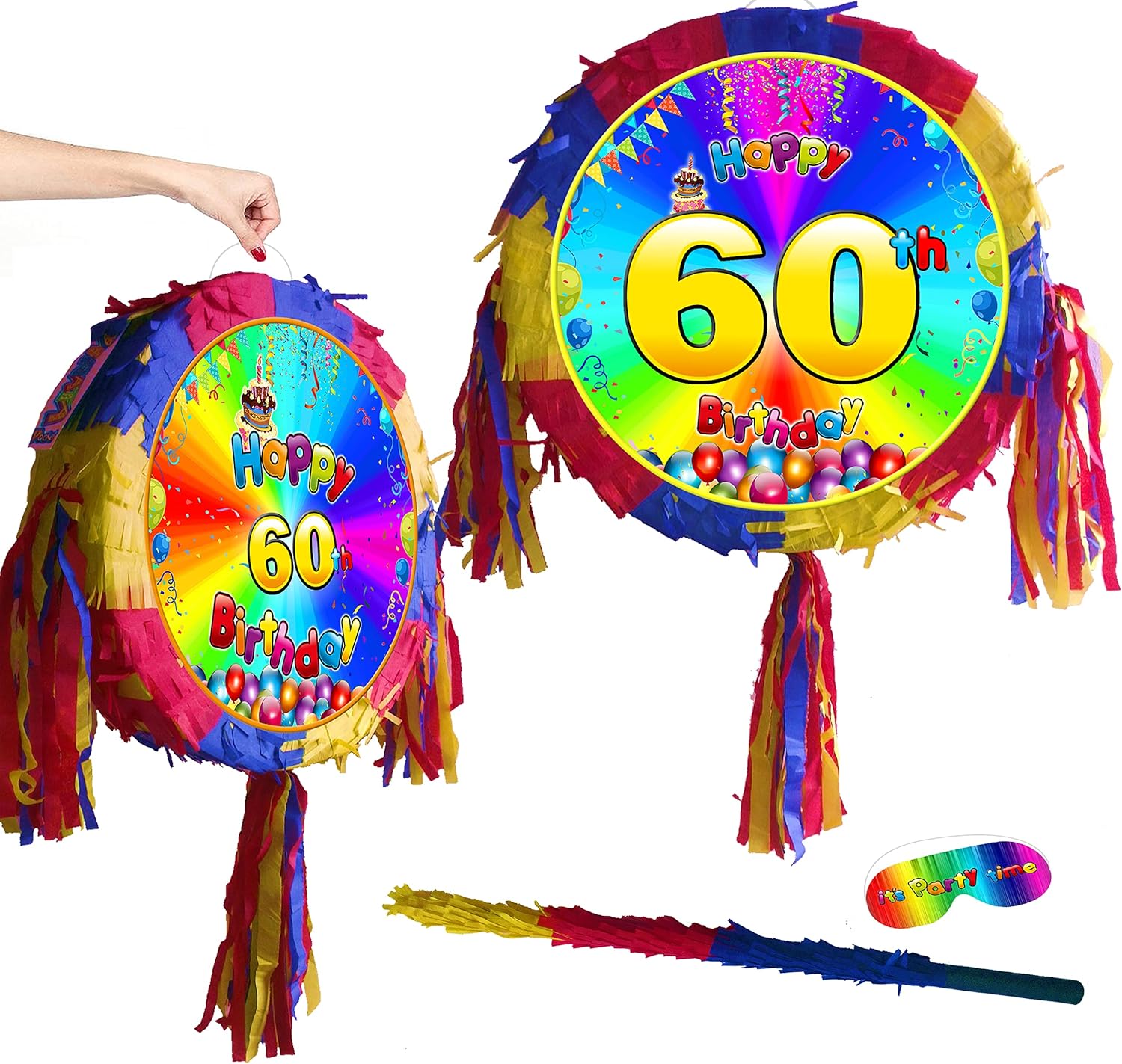 La pinata viene fornita con una cravatta di carta. La piñata include finestra di riempimento e cinturino o cinturino. Adatto sia a bambini che ad adulti. Unisex Spediamo lo stesso giorno in una scatola robusta. Piñata rotonda con due lati piatti. Ogni pagina ha una stampa unica. Le foto mostrano la parte anteriore e posteriore della pinata. Perfetto per un 60° compleanno o un anniversario di diamanti.