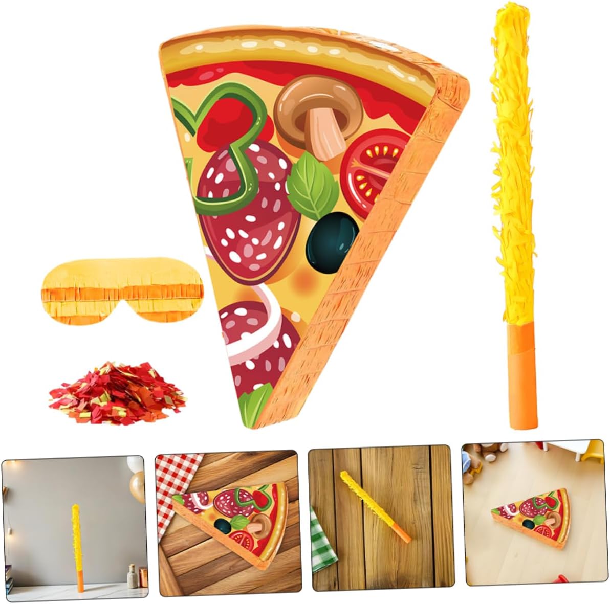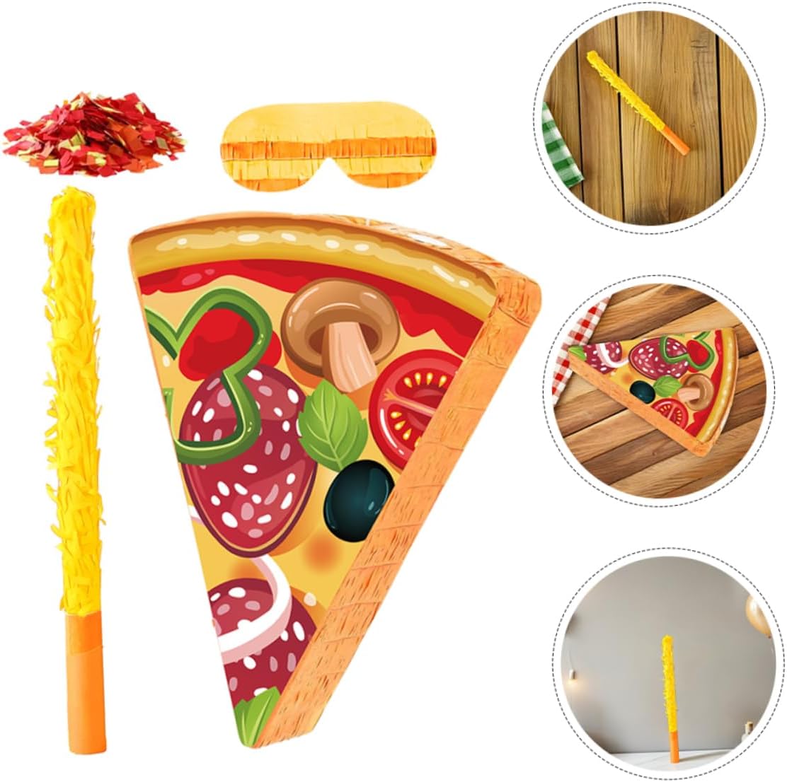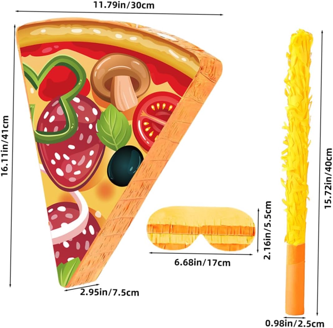 Comodo anello per appendere: dotato di un robusto anello per appenderlo facilmente, rendendolo facile da integrare nell'allestimento di una festa, giochi per feste Cinco de Mayo o decorazioni di compleanno per tranci di pizza Set completo per feste: include una benda e un bastone, fornendo tutto il necessario per un'esperienza di gioco emozionante e interattiva della piñata, divertenti giochi di piñata con cibo e giochi di pizza party Facile da appendere: dispone di un anello per appenderlo senza sforzo Può essere appeso in diversi punti per garantire la massima visibilità. Decorazioni per coriandoli per pizza party, coriandoli per feste con cibo Design riempibile: presenta un comodo foro di riempimento coperto da adesivo in modo da poter aggiungere coriandoli, caramelle, cioccolato o mini per una meravigliosa sorpresa, gioco per pizza party o decorazioni per regali per pizza party Divertimento interattivo: gli ospiti possono, a turno, bendati e utilizzando il bastoncino incluso per rompere la piñata e mettere le caramelle all'interno, rilasciarle e crearne di indimenticabili. Decorazione per feste gastronomiche, piñata di compleanno di Cinco de Mayo