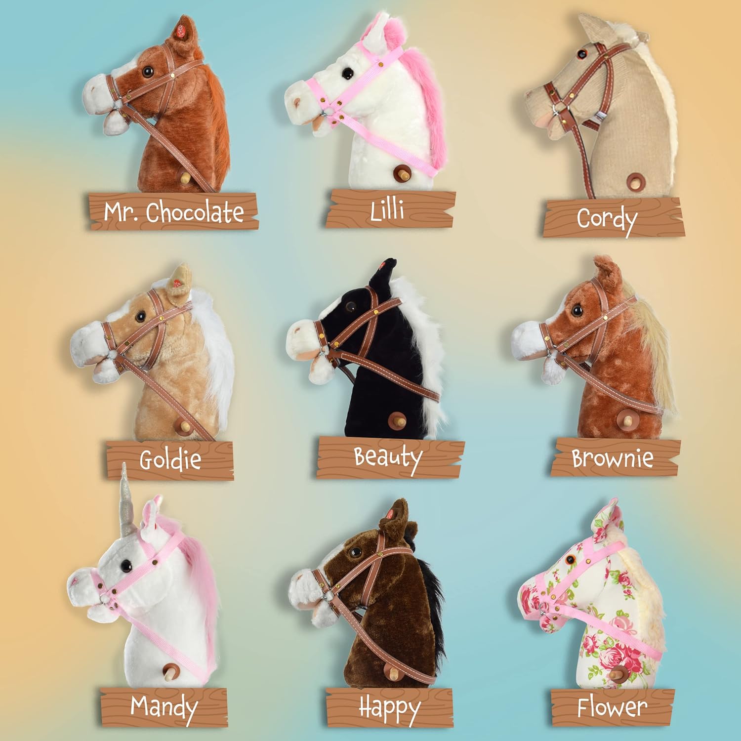 DESIGN! Un meraviglioso design ed una lavorazione di alta qualità rendono questo splendido cavallo con bastone il sogno di ogni bambino! Questo cavalluccio giocattolo è una fantastica idea regalo! DA COCCOLARE! Con maniglie e briglie sulla morbida testa di peluche, su un bastone di legno lungo 65 cm con comode rotelle di legno. Il perfetto compagno per piccoli amanti dell'avventura. DOTAZIONE! Se si schiaccia l'orecchio del cavalluccio si sentono due suoni, un galoppo e un nitrito. Le batterie sono comprese nella confezione. DOLCISSIMO! Coi suoi occhi fedeli a bottone e i suoni magici nell'orecchio questo cavalluccio porta il tuo bambino per monti e per valli. PRODOTTO DI MARCA! Ogni cavalluccio giocattolo della marca Pink Papaya viene realizzato a mano ed è un pezzo unico. Cavallucci giocattolo per bambini e bambine disponibili in tanti design esclusivi.