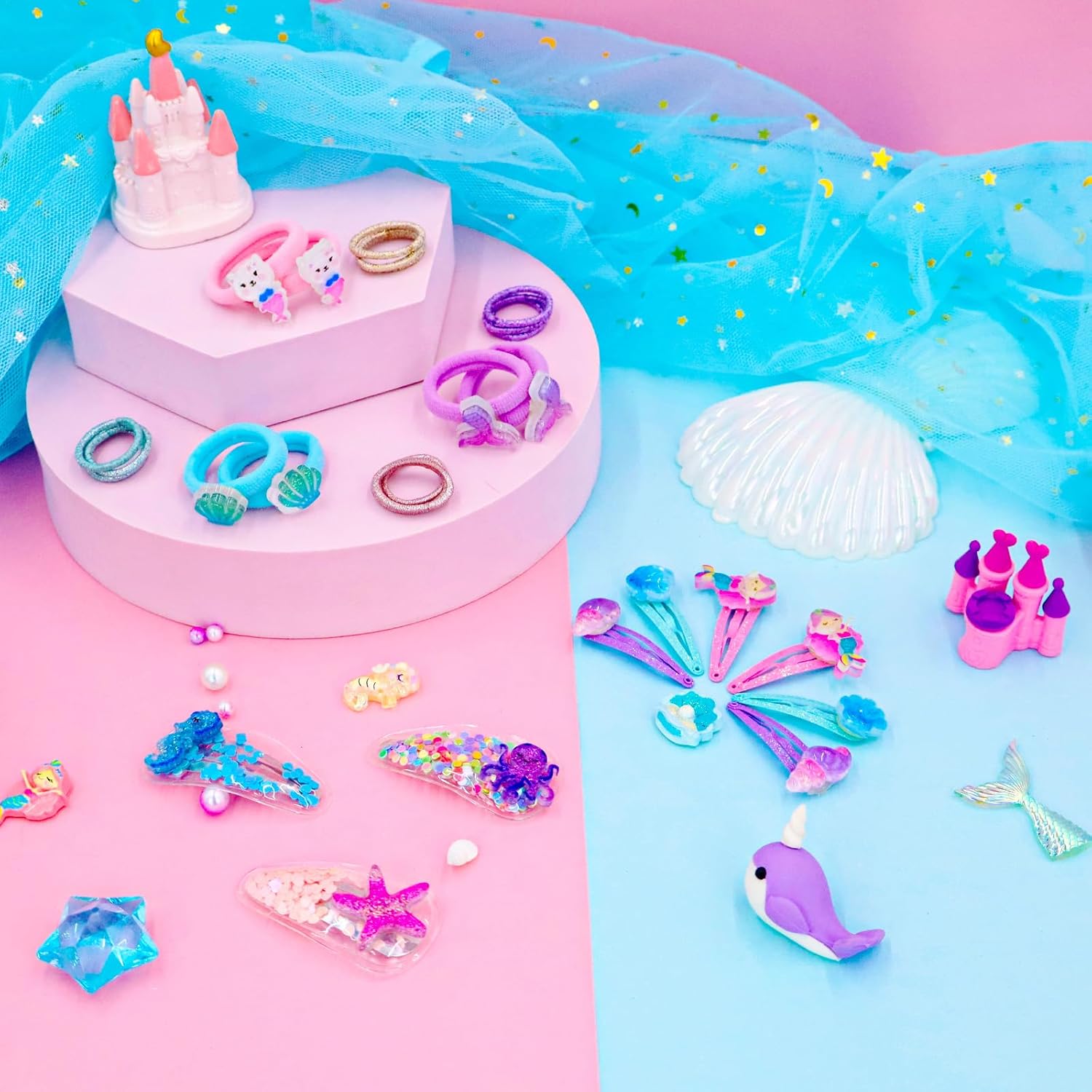 Design a sirena: il set di accessori per capelli PinkSheep per bambine, progettato esclusivamente per le sirene, è un incontro perfetto tra fantasia oceanica e realtà elegante. Adotta un colore blu-viola-rosa, incorporando elementi come sirene, conchiglie, pesci gatto e stelle marine nei fermagli per capelli e negli elastici per capelli in spugna. Ogni ragazza che lo indossa diventa affascinante come una sirena. Cosa c'è nella confezione: set di 27 accessori per capelli a sirena per ragazze, inclusi 3 fermagli per capelli coriandoli, 6 fermagli per capelli, 12 elastici per capelli e 6 pony di spugna; accessori per capelli di alta qualità, confezione conveniente Crea molteplici stili di capelli: accessori per capelli a sirena, perfetti per compleanni, feste, attività scolastiche, vacanze. Accessori per capelli intrecciati, elastici per capelli a treccia. Prepara uno chignon, tieni la frangia, una decorazione per i capelli, un fermacoda. Puoi lasciare che la tua bambina provi la magia di questi accessori per capelli da sirena e dell'assortimento di acconciature senza preoccupazioni. Accessorio per capelli sicuro: questa affascinante collezione di tolette per ragazze è realizzata con materiali di alta qualità, nessun danno alla pelle del tuo bambino. Morbido e robusto, non cade facilmente o si rompe, comodo da indossare e non danneggia i capelli. Bel regalo per ragazza: set di accessori per capelli per ragazze confezionato in una bellissima scatola di sirene rosa e ottimo come regalo di compleanno, regalo di Natale, regalo di Capodanno o bomboniera. Questi fermagli per capelli multistile sono la scelta migliore per preparare regali per tua nipote, figlia, sorella, figli o amici