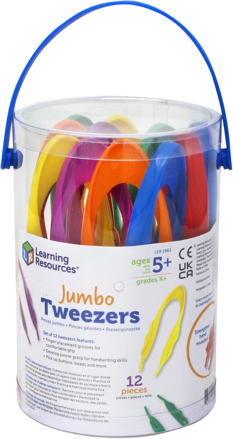 ALLENARE LE ABILITÀ MOTORIE FINE: Promuove importanti abilità motorie come la coordinazione occhio-mano e il controllo della forza - ideale per bambini dai 5 anni in su. IMPARA A IMPUGNARE IN MODO GIOCOSO: la forma delle pinzette, adatta ai bambini, imita la posizione delle dita durante la scrittura e aiuta a imparare a tenere una penna. IDEALE PER CENTRI DIDATTICI: Perfetto per giochi di smistamento, esercizi di conteggio, giochi di colori e altre attività creative nella scuola dell'infanzia e primaria. ROBUSTO SET PER LA CLASSE: 12 pinzette resistenti in colori vivaci: abbastanza grandi per le mani dei più piccoli, abbastanza forti per l'uso quotidiano. CONTENUTO DELLA CONSEGNA: 12 pinzette giganti (ciascuna lunga circa 15 cm), colori assortiti. Non sono necessarie batterie. Adatto al lavoro di gruppo e individuale. IMPARARE È DOVE GIOCIAMO: A Learning Resources, i bambini scoprono competenze importanti in modo giocoso. I nostri prodotti stimolano la curiosità, promuovono il pensiero creativo e rendono l'apprendimento un'esperienza divertente.