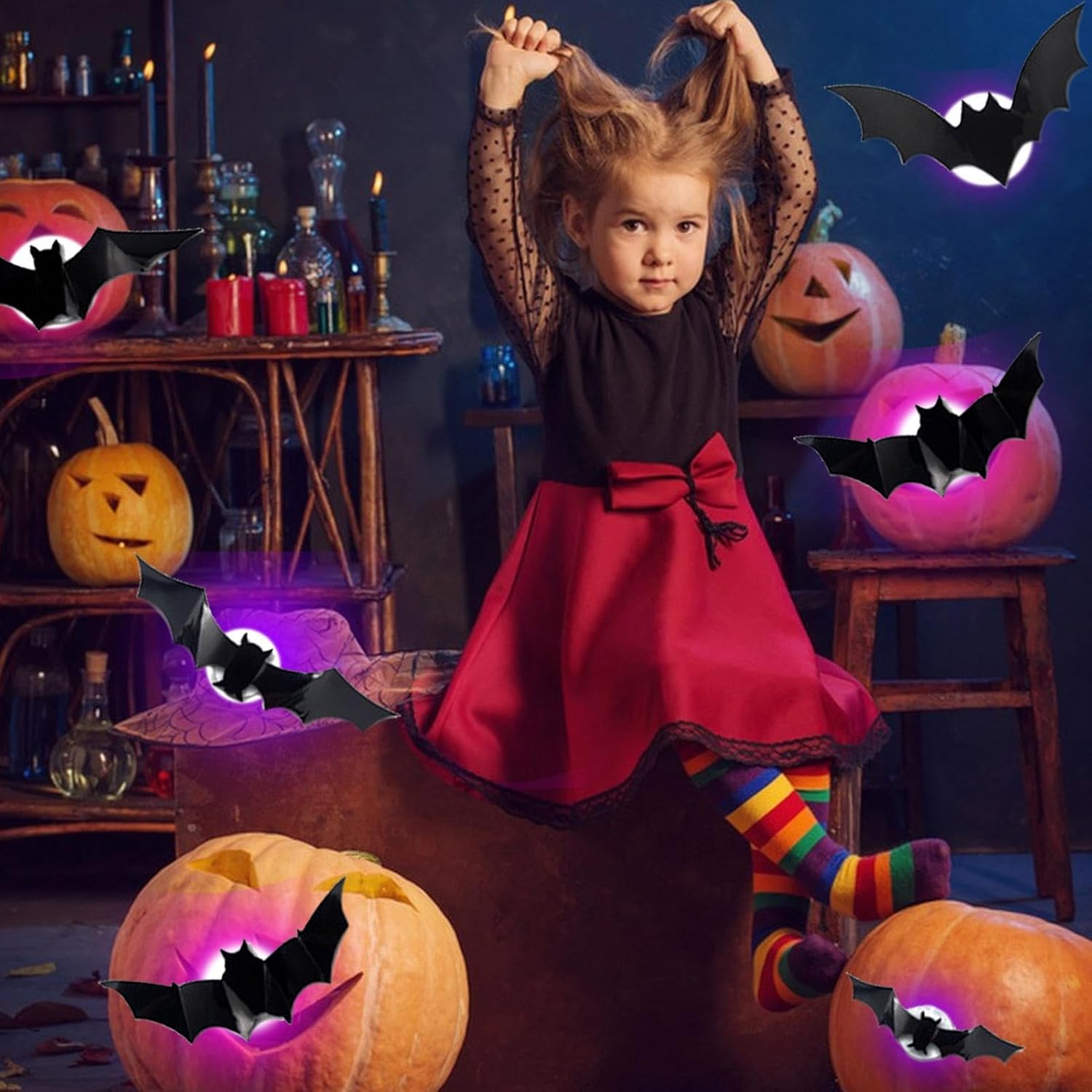 Decorazione spettrale ecologica: con la loro illuminazione a LED, questi pipistrelli illuminati in 3D danno vita a una misteriosa atmosfera di Halloween, sono un must per le feste a tema e promuovono pratiche di decorazione sostenibili anno dopo anno. Trasformazione festosa istantanea: i pipistrelli LED 3D fungono da adesivi per finestre e adesivi murali rimovibili, forniscono una decorazione natalizia istantanea che illumina gli spazi interni ed esterni durante Halloween o feste a tema e creano senza sforzo un'atmosfera spettrale e coinvolgente Incantevole proiezione LED: i pipistrelli LED 3D forniscono decorazioni luminose con incantevole proiezione LED, con sagome danzanti dinamiche che danno vita agli adesivi murali notturni e creano una scena di Halloween indimenticabile. Creatore di atmosfere inquietanti: LED Bats Halloween Decor combina forniture per feste spettrali con accessori adattabili Adesivi 3D, che forniscono un modo semplice per decorare pareti e altre superfici per le festività di Halloween e le celebrazioni a tema infestato. Decora la gioia dell'artigianato familiare: i pipistrelli luminosi promuovono il legame attraverso semplici lavoretti per bambini e forniscono un elemento decorativo luminoso, perfetto per idee regalo di Halloween e progetti di decorazione domestica per garantire attività festive memorabili per tutta la famiglia