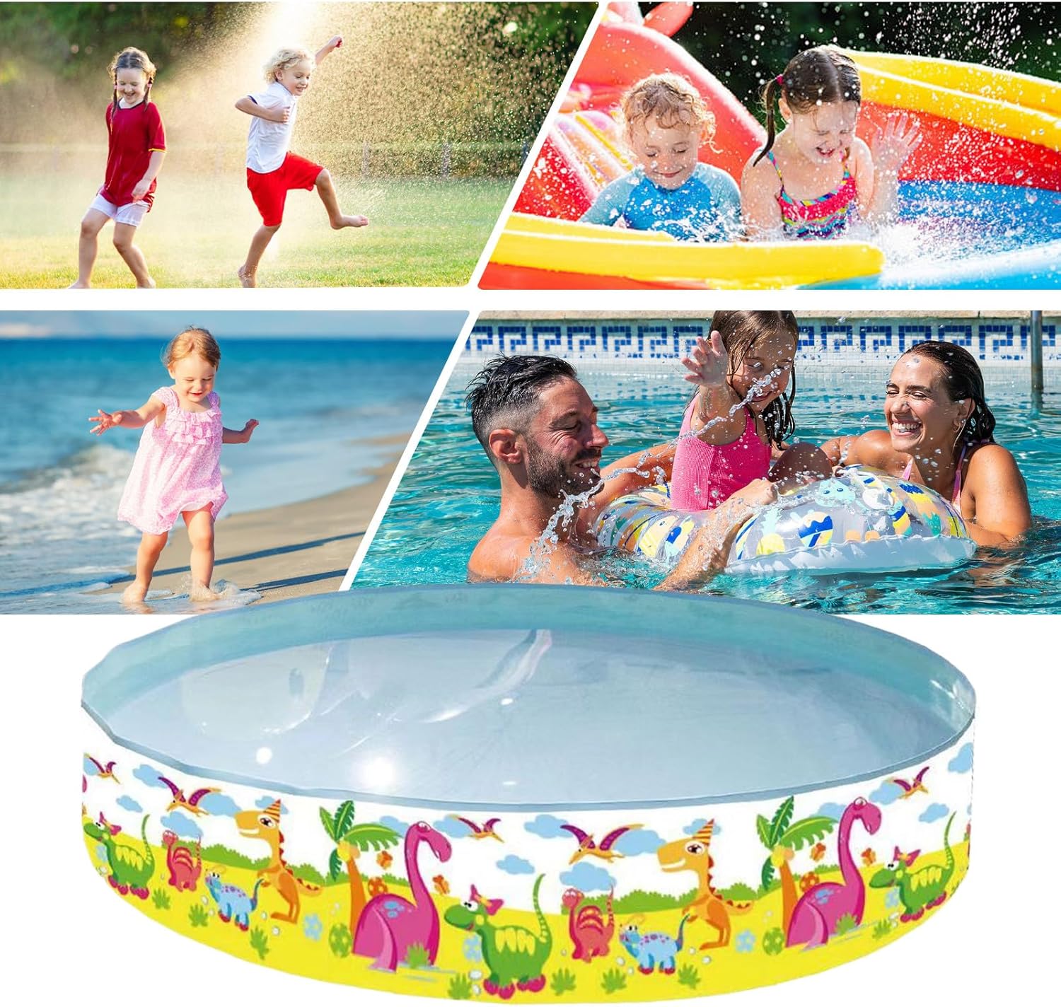 Gioco immaginativo: grafica colorata raffigurante l'universo e preistorico affascinano l'attenzione di, trasformando ogni balneazione in un'esperienza giocosa ricca di scoperte Piegare in 1 secondo: design compatto che si ripone in uno spazio minimo. Nessun attrezzo richiesto: apri, riempi e goditi il tuo bacino gonfiabile in meno di 5 minuti. Versatilità ottimale: ideale per schizzi estivi e momenti giochici, questa piscina pieghevole trasforma qualsiasi spazio in una zona acquatica sicura. Perfetto per rinfrescare le giornate calde come per creare ricordi familiari memorabili. Pratica quotidiana: montaggio espresso senza pompa elettrica. La forma autoportante rimane stabile su o terrazza per ore di gioco sicure. Sicurezza ottimizzata: bordi lisci e arrotondati appositamente progettati per ridurre al minimo il rischio di graffi, offrendo un ambiente di gioco sicuro dove possono divertirsi in tutta tranquillità