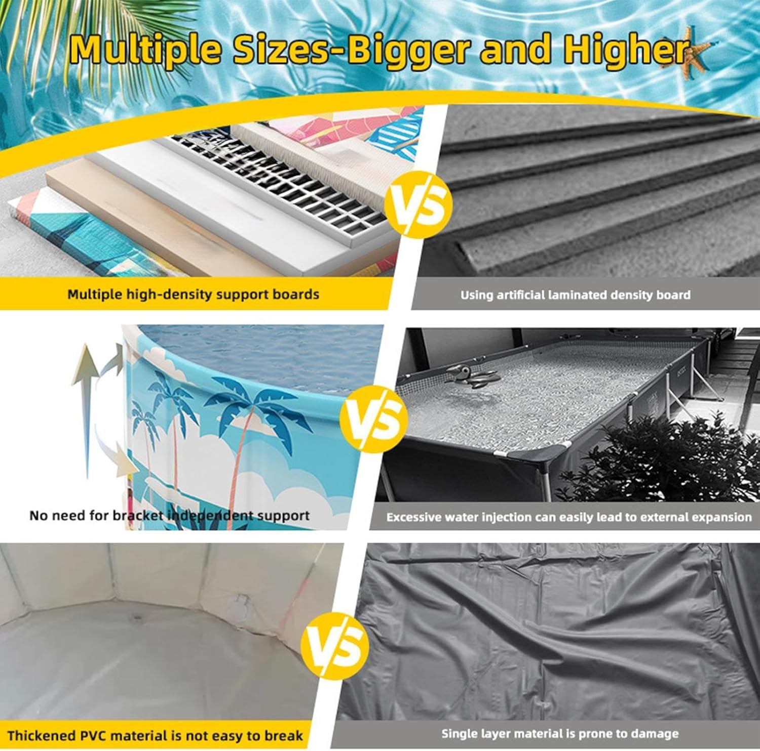 Facile da mantenere: realizzata in PVC ad alta densità, questa piscina pieghevole per bambini presenta un robusto supporto laterale e una superficie resistente all'usura per un uso duraturo, garantendo allo stesso tempo una facile pulizia e prestazioni impermeabili Esperienza in piscina senza sforzo: pronta all'uso con una facile preparazione, questa piscina per bambini adatta alle famiglie non richiede gonfiaggio e consente di divertirsi con facilità per un'esperienza facile che bambini e genitori adoreranno Rilascio rapido dell'acqua: goditi una pulizia flessibile nella piscina dei bambini, con fori di drenaggio efficienti che consentono uno svuotamento rapido e supportano la manutenzione igienica con un uso delicato del detergente Design pieghevole compatto: caratterizzato da un design pieghevole compatto, questa piscina per bambini è leggera e portatile, offre un utilizzo versatile e una configurazione senza sforzo pur essendo molto adatta per attività all'aperto Funzionalità per tutte le stagioni: ideale per riporre i giocattoli in inverno e per ospitare divertimento acquatico in estate, garantisce un ambiente di gioco sicuro e fantasioso all'interno o all'aperto, per bambini e animali domestici con piacere tutto l'anno