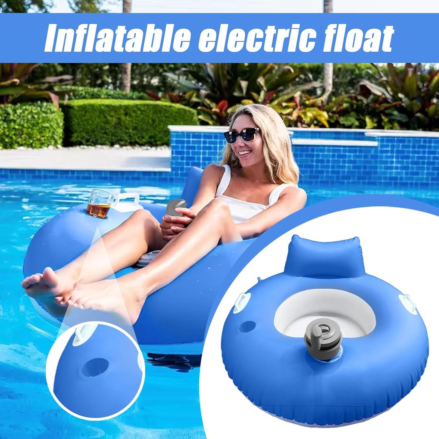 Versatile floating lounger for multiple outdoor scenarios: Ideal for pool parties, lake outings, beach sunbathing, and river cruising, this electric float adds excitement and ease to your summer lifestyle while ensuring maximum confort Enjoy effortless floating with this electric pool float lounger: Designed for summer relaxation with a built-in motor to gently glide across lakes or pool while keeping you cool and comfortable for hours of fun under the sun Luxuriously comfortable inflatable mattress with ergonomiic support: Features a soft, durable that contour to your body for conciing or lounging whether you 're floating in un fiver, swimming pool, or enjoying a beachside breeze Rapida inflation and portability in convenient design: Easily inflates and deflates for compact storage and transport making it the ideal float for travel, vacation getaways, or spontaneous outdoor adventures by water Design spazioso con 39,76 pollici di rilassamento completo del corpo: ampio spazio per uomini e donne per allungare e smontare, dando una lussuosa resort-like experience during summer swimming parties or solo chill sessions