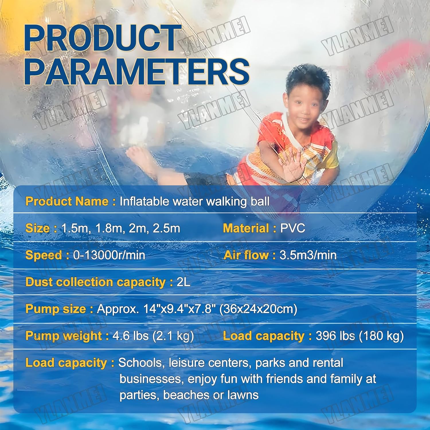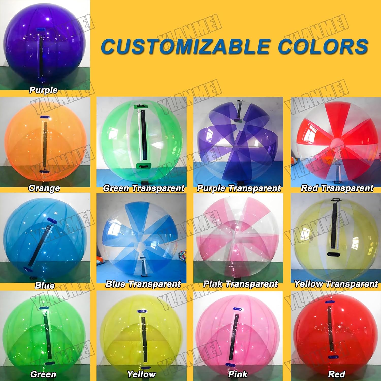 Gonfiaggio e sgonfiaggio rapidi: la palla che scorre ad acqua ha una forte porta ermetica per la valvola dell'aria e una pompa dell'aria da 800 W, che aumenta il gonfiaggio e lo sgonfiaggio dell'aria di oltre cinque volte. Può essere facilmente sgonfiato in pochi minuti ed è comodo da portare con te Materiale robusto per un gioco infinito: realizzata con robuste pellicole in PVC da 0,18 mm, la palla che scorre ad acqua garantisce un'elevata resistenza alla trazione e un'eccellente resistenza all'abrasione. Può sopportare un peso di 180 kg. Questo materiale ecologico e non tossico lo rende sicuro per i bambini, fornisce sicurezza durante il gioco., Forte tenuta: questa palla gonfiabile utilizza una cerniera impermeabile, che ha una forte tenuta, una trazione salda e liscia. E la guarnizione è rinforzata con adesivi per prevenire danni e usura della cerniera. Lascia che la famiglia e gli amici camminino, rotolino e girino sull'acqua senza bagnarsi. Ampia applicazione: la palla d'acqua da passeggio è adatta a scuole, centri ricreativi, parchi, negozi di noleggio. Goditi la corsa, il rotolamento e l'apertura dell'acqua. Divertiti con i tuoi amici e le famiglie alla festa, in spiaggia o sul prato. Assicurati sempre una supervisione competente quando giochi per massimizzare la sicurezza e il divertimento durante le tue avventure acquatiche. Varie dimensioni e colori: il pallone da spiaggia è disponibile in varie dimensioni (diametro = 1,5 m/1,8 m/2 m/2,5 m) e colori per soddisfare le tue preferenze ed esigenze. Aggiungi un elemento unico e divertente a qualsiasi attività acquatica che ti piace. (Nota: 1,5 m è adatto solo ai bambini)
