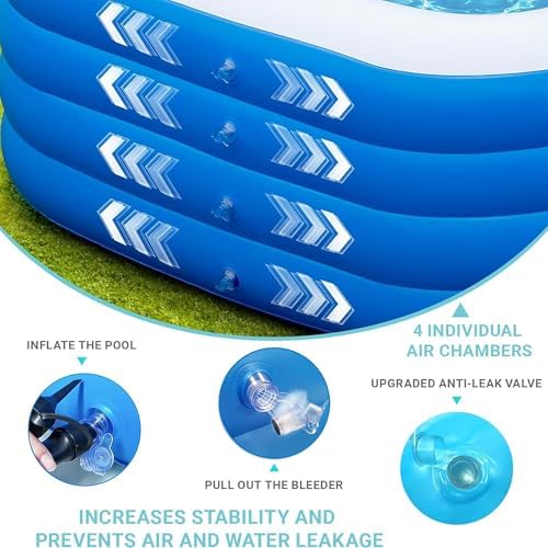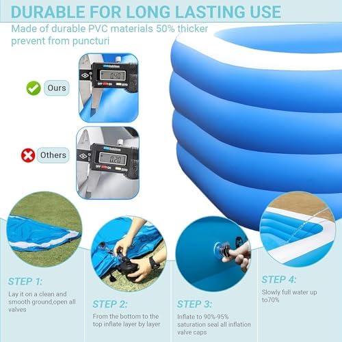 Stampaggio potente ed efficiente: dotato di un nucleo di azionamento ad alta frequenza aggiornato con un motore da 50.000 giri/min, questo dispositivo produce un flusso d'aria quattro volte superiore per uno stampaggio rapido in soli 40 secondi, eliminando lunghi tempi di attesa e massimizzando il divertimento. Comodità wireless: progettato per il funzionamento wireless e l'aspirazione a doppio uso, questo dispositivo di gonfiaggio ti libera dalle restrizioni dei cavi, rendendolo perfetto per il campeggio all'aperto e le feste in patio, consentendo di rilassarsi e divertirsi senza problemi. Ecologico e robusto: realizzato con materiali importati, ad alta densità, inodore, questa struttura airbag multistrato è sicura, durevole e resistente all'usura. Il design ispessito e la speciale seta 72 con PVC ecologico ne aumentano la longevità. Comodo per l'uso tutto l'anno: la piscina rialzata a quattro strati con fondo a bolle a doppio strato offre un'esperienza morbida e delicata sulla pelle che si sente benissimo sui piedi. Con un'eccellente resistenza sia al caldo che al freddo, puoi goderti il gioco d'acqua in qualsiasi stagione. Varietà per soddisfare ogni esigenza: disponibile in diverse dimensioni per soddisfare diverse preferenze, questa opzione gonfiabile è perfetta sia per bambini che per adulti, garantendo a tutti la possibilità di creare la loro esperienza acquatica ideale.