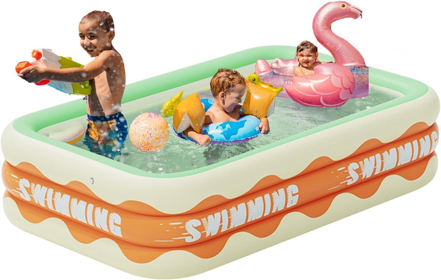 Protezione estiva ideale: la nostra piscina per gonfiabili è realizzata con materiali durevoli e resistenti ai raggi UV, bloccando efficacemente i dannosi raggi solari UVA e UVB. È sicuro al 100% da usare al sole, offrendo un divertimento senza interruzioni per il sole per il tuo. Inflazione pratica: Configurare questo pool di senza sforzo in soli 2-4 minuti con l'aiuto di doppie valvole che non perdono. Gonfiare facilmente e sgonfiare con una pompa ad aria elettrica (venduta separatamente) per un'esperienza senza problemi. Goditi una spruzzata rinfrescante H in pochissimo tempo. Ambito di applicazione: trasforma il tuo giardino in una zona di gioco con questa piscina gonfiabile, perfetta per rilassarsi, pescare o come palla e sabbia. Ideale per uso interno ed esterno. Morbido e confortevole: il fondo morbido e confortevole della nostra piscina gonfiabile offre ammortizzazione, fornendo un ambiente sicuro e stabile per il tempo di gioco del tuo bambino. Il design del fondo delle bolle ispessite aiuta a prevenire cadute e garantisce la massima stabilità, dandoti la tranquillità. Pervolenza divertente: l'aspetto attraente e il design versatile della nostra piscina gonfiabile che funge da fossa di palla. Goditi più divertimento interno ed esterno con la funzione piscina per, perfetto per il legame familiare e il divertimento.