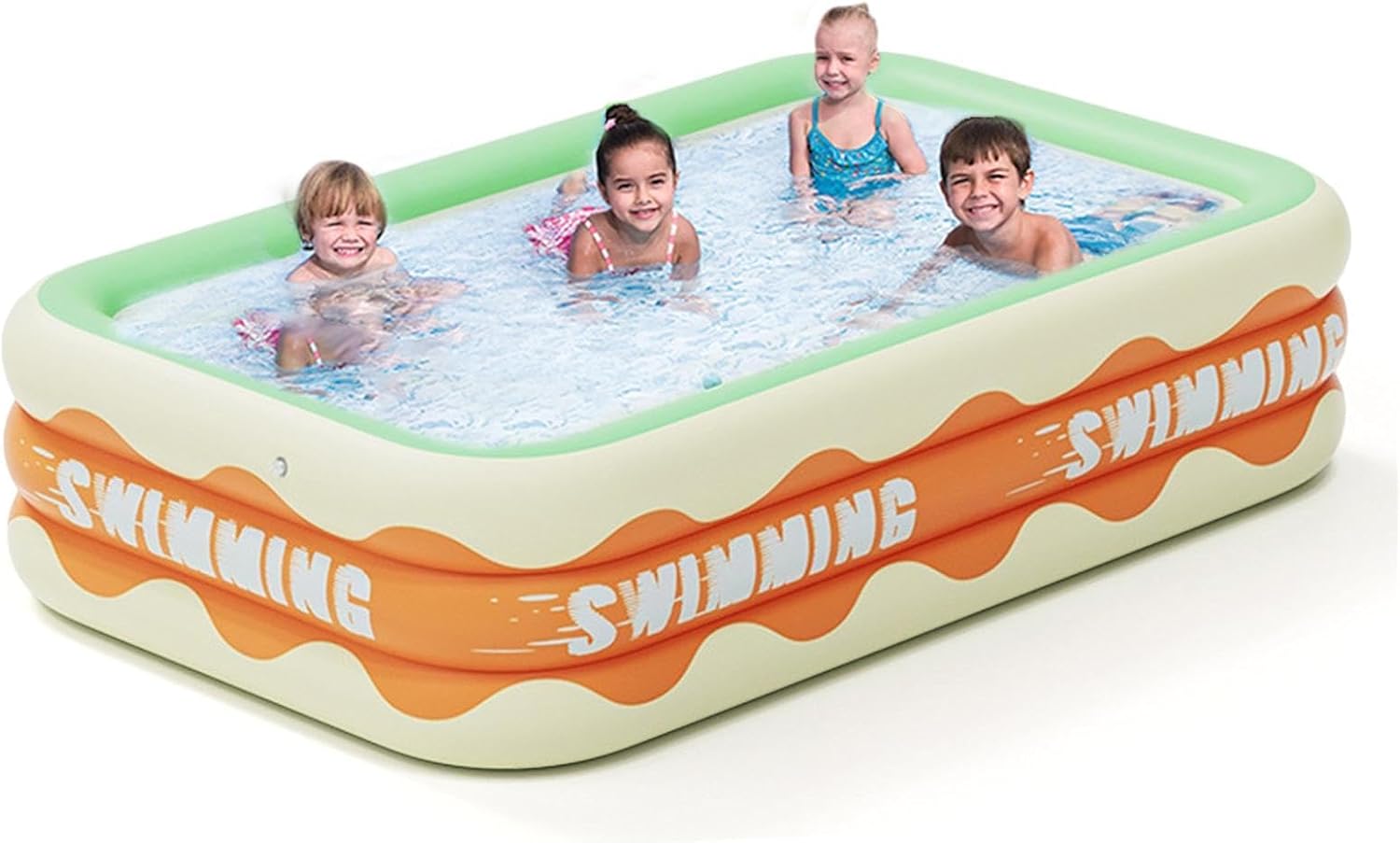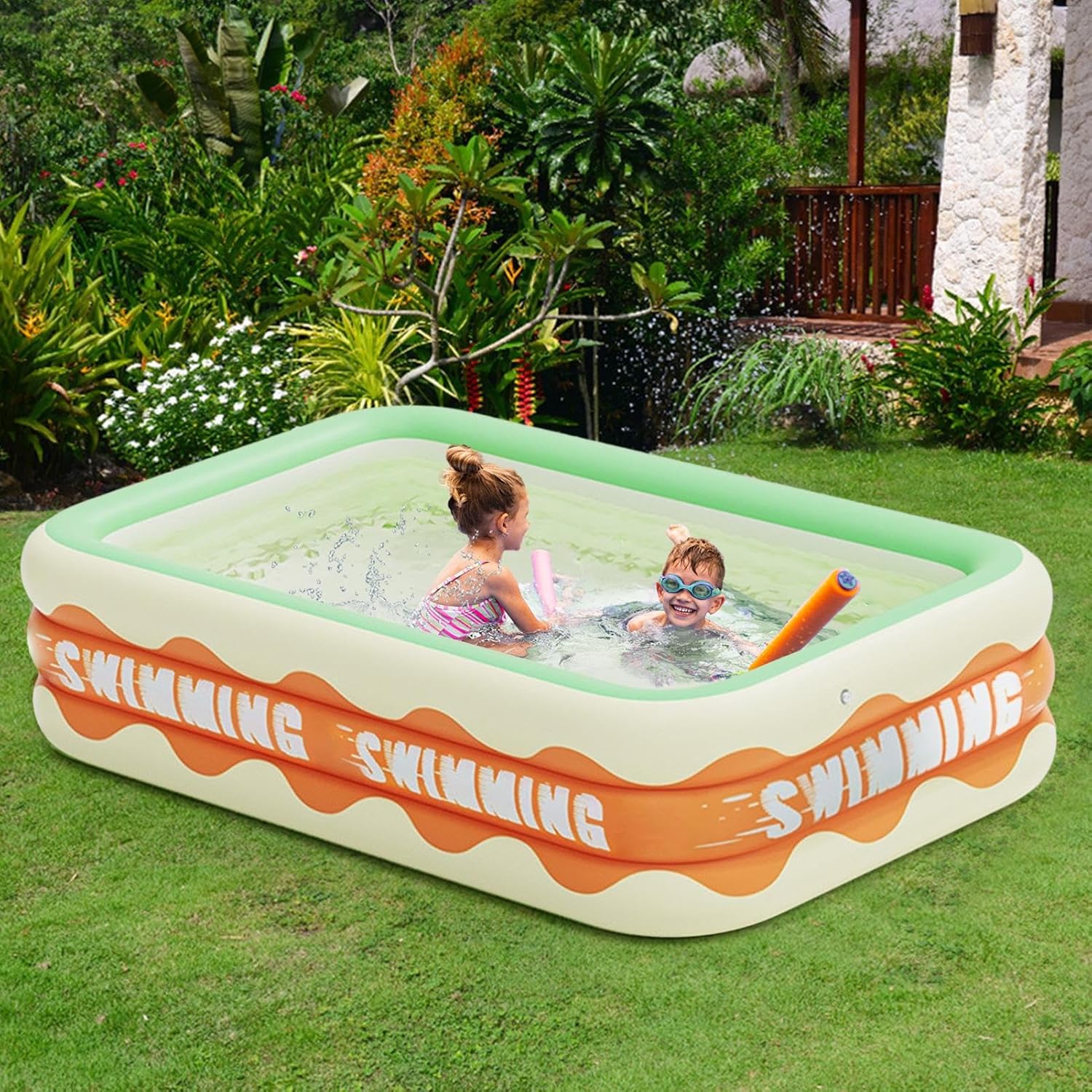 Divertimento sicuro al sole: realizzata in materiale durevole e resistente ai raggi UV, questa piscina gonfiabile offre una protezione solare ideale per i bambini bloccando efficacemente i dannosi raggi UVA e UVB. La sua funzionalità di sicurezza avanzata garantisce divertimento acquatico ininterrotto e sicuro per i tuoi bambini. Configurazione istantanea: si gonfia rapidamente e mantiene l'integrità grazie al coperchio a doppia valvola che evita perdite. Facile da gonfiare e sgonfiare con la pompa ad aria elettrica (non inclusa), che consente una rapida installazione in 2-4 minuti. Rilassati in pochissimo con questa piscina gonfiabile facile da usare. Ampiamente utilizzato: crea un'area giochi versatile con questa piscina gonfiabile che offre più opzioni per il divertimento in famiglia. Ideale per uso interno ed esterno, questa piscina multifunzionale dispone di una comoda area salotto e può essere trasformata in una vasca con palline, una vasca con sabbia e altro ancora. Affidabile e confortevole: con un fondo a bolle gonfiabili ispessito, la nostra piscina ammortizza il gioco del bambino, garantendo un'esperienza morbida e confortevole e riducendo il rischio di cadute. Molteplici opzioni di divertimento: goditi ore di divertimento con la nostra piscina gonfiabile che funge anche da vasca con palline e vanta un design unico e accattivante. Usalo all'interno o all'esterno per un divertimento versatile in famiglia.